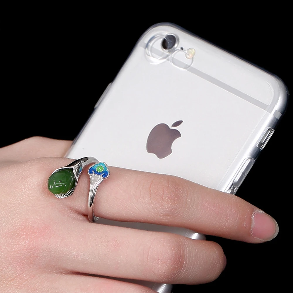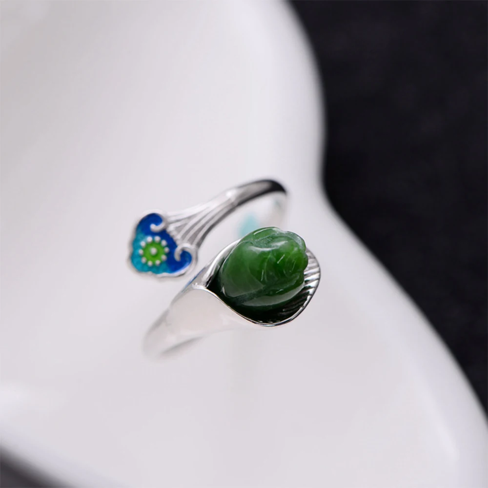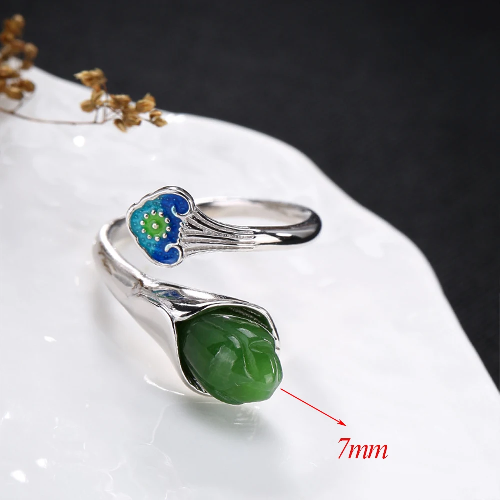 Natural Jasper Rings & Handmade Vintage Enamel Solid 925 Sterling Silver Open Ring for Women's Fine Jewelry