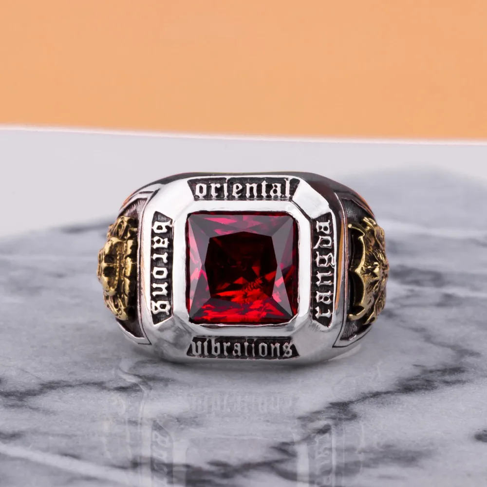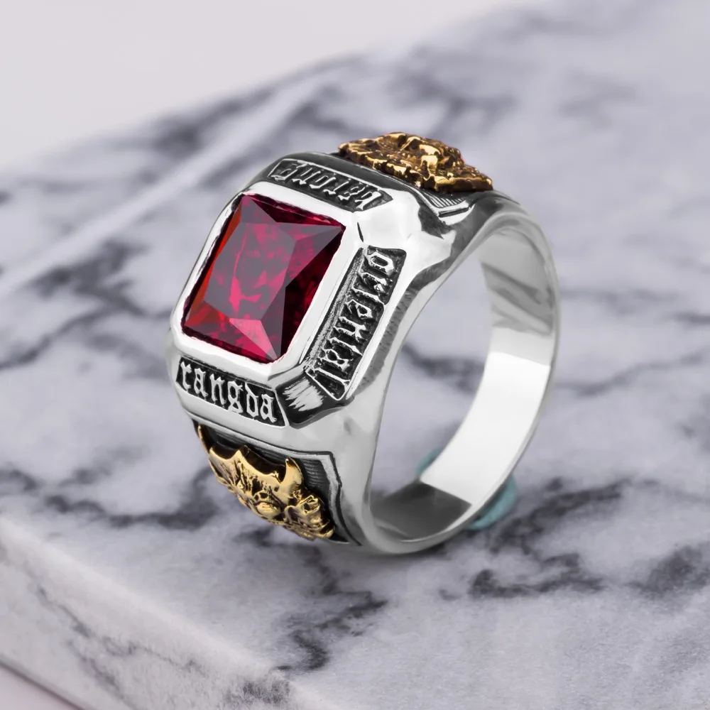 Vintage Men's Ruby Ring Solid 925 Sterling Silver Ring for Men Punk Fine Jewelry