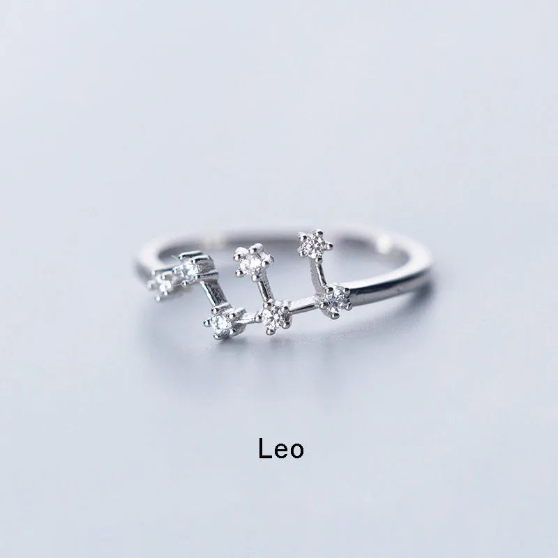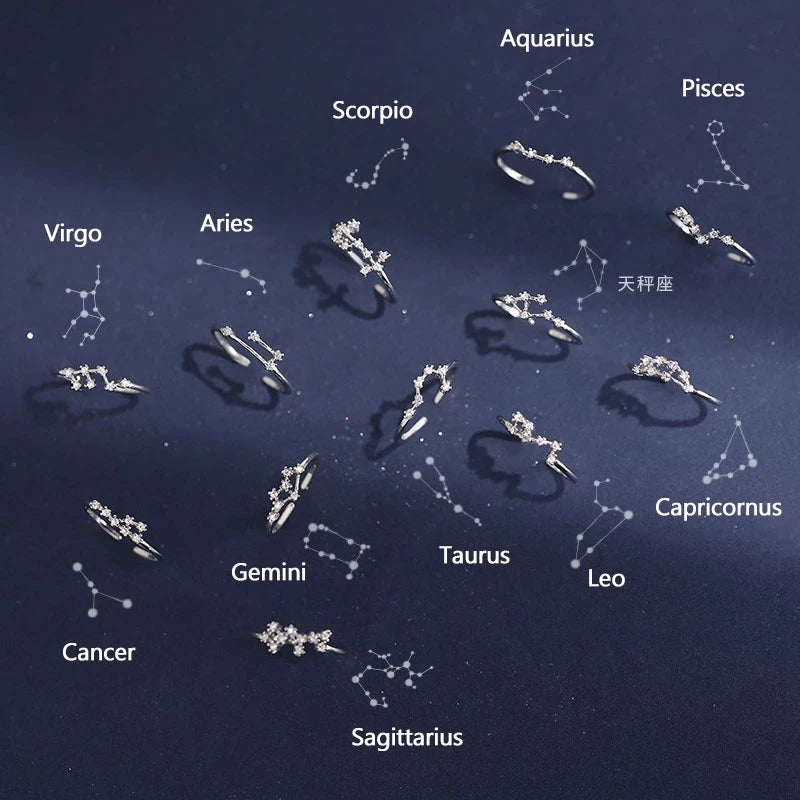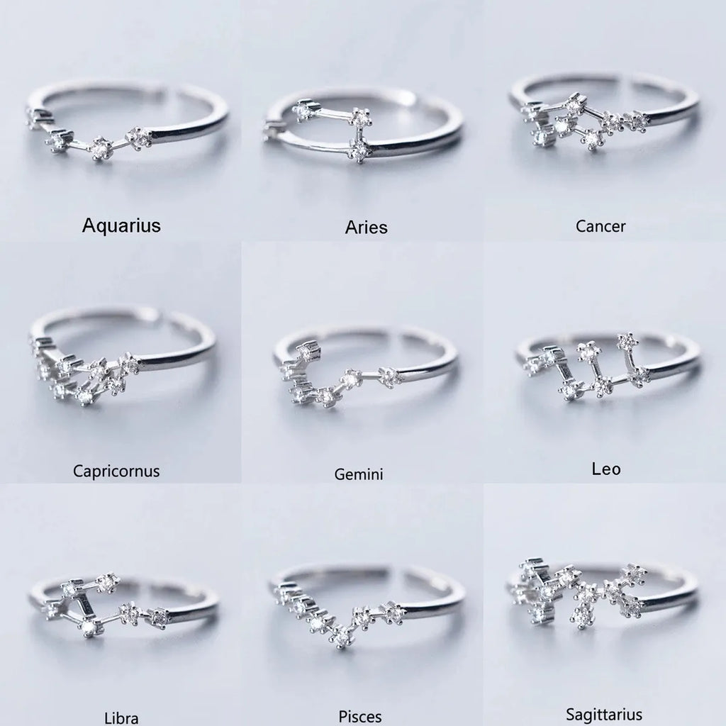 Minimalist Inlaid Cubic Zircon 12 Constellation Rings For Women Zodiac Sign Adjustable Finger Ring Simple Silver Color Jewelry