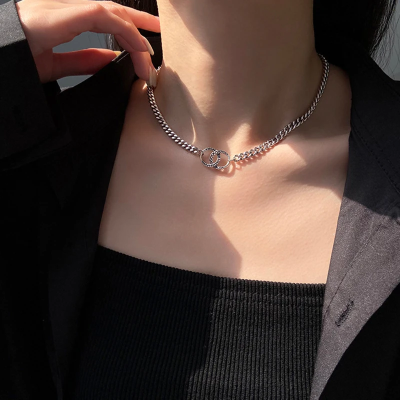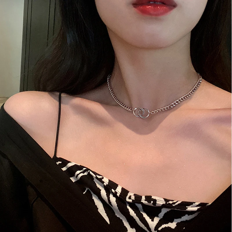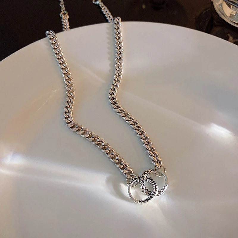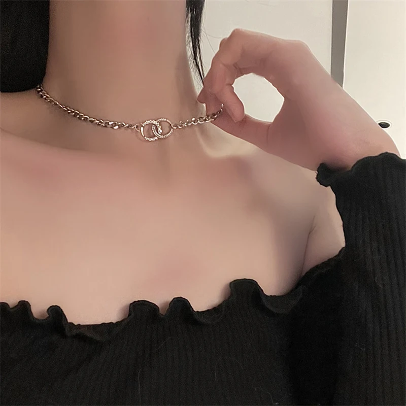 Minimalist Simple Geometric Double Circle Necklaces Women Design Irregular Clavicle Chain Vintage Baroque Jewelry Gift