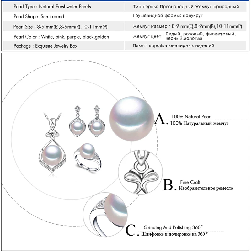 Pearl Jewelry wedding engagement jewelry sets,Natural Pearl pendant Necklace women/party earrings female/silver ring