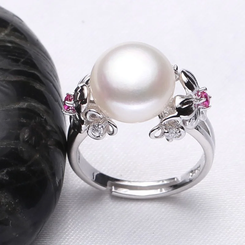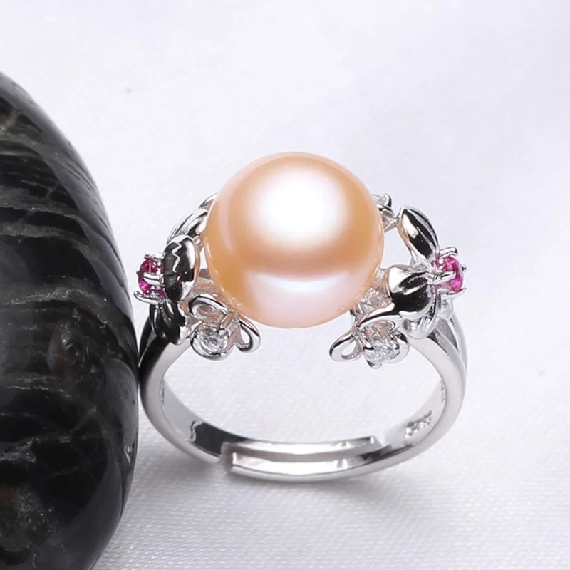 10-11mm Pearl Jewelry,natural Pearl rings for love, Pearl 925 Silver ring,ruby silver rings for women gift box