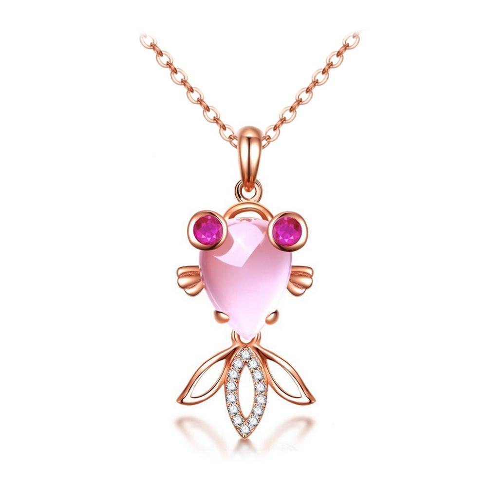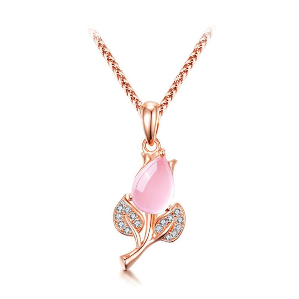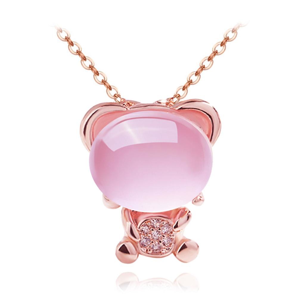 925 Sterling Silver Rose golden animal Bear necklace pendant for women plant Cubic zirconia CZ pink opal necklace girl