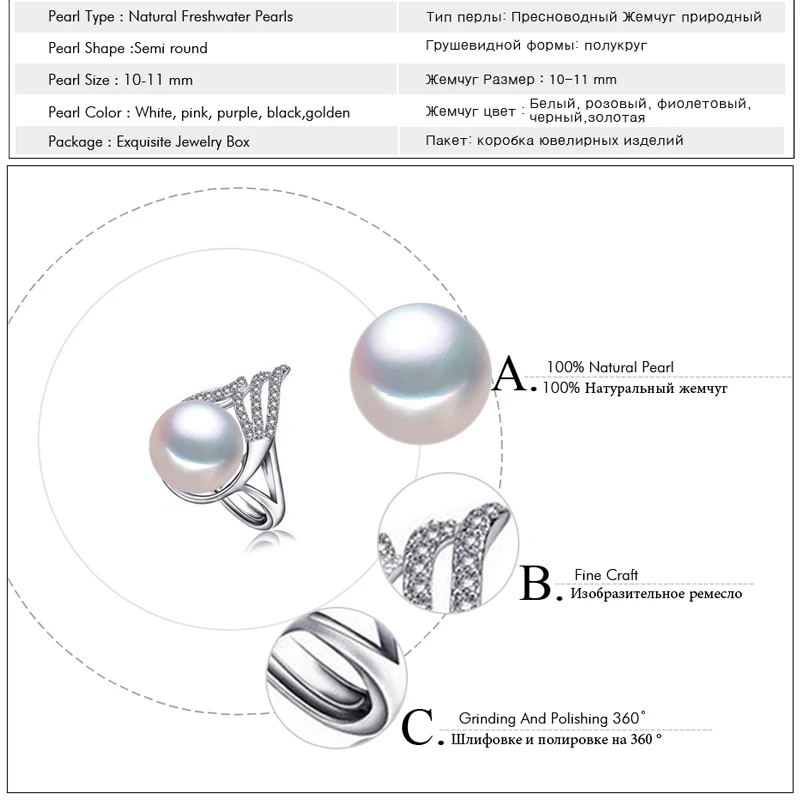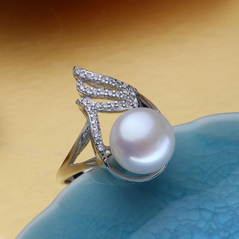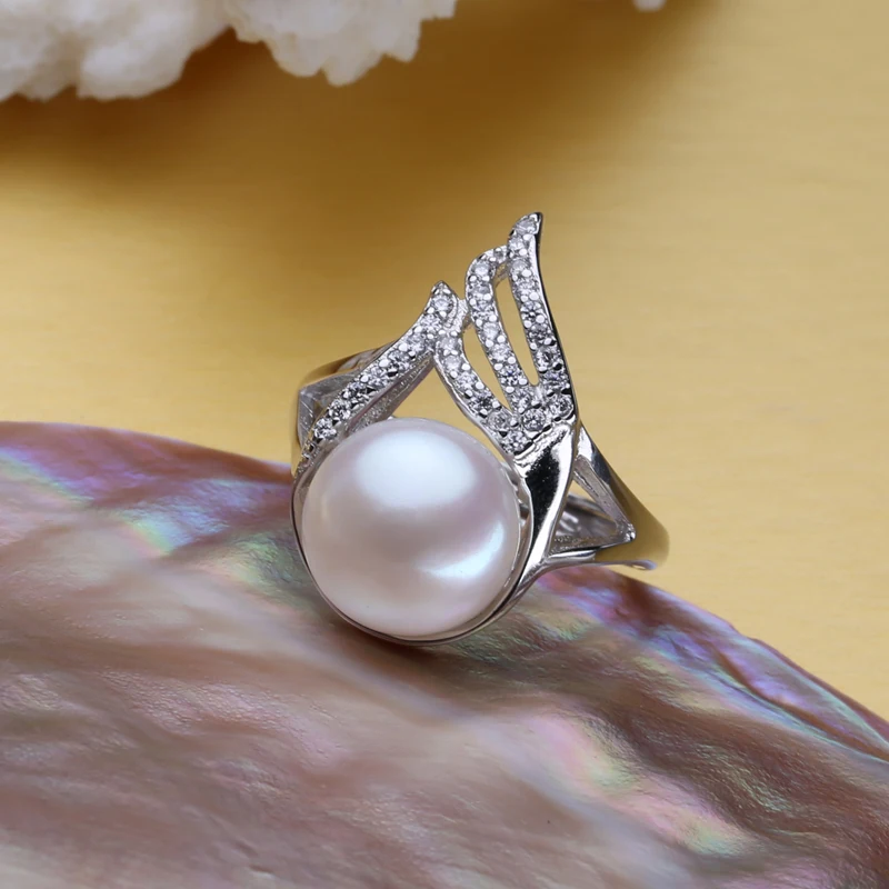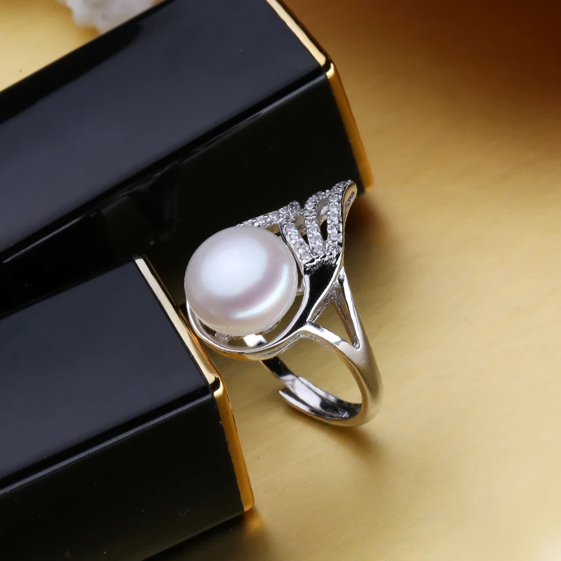 Pearl Jewelry natural Pearl rings for women Pearl 925 Silver ring geometric vintage rings with gift box