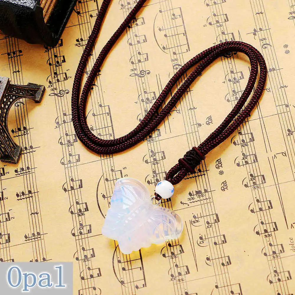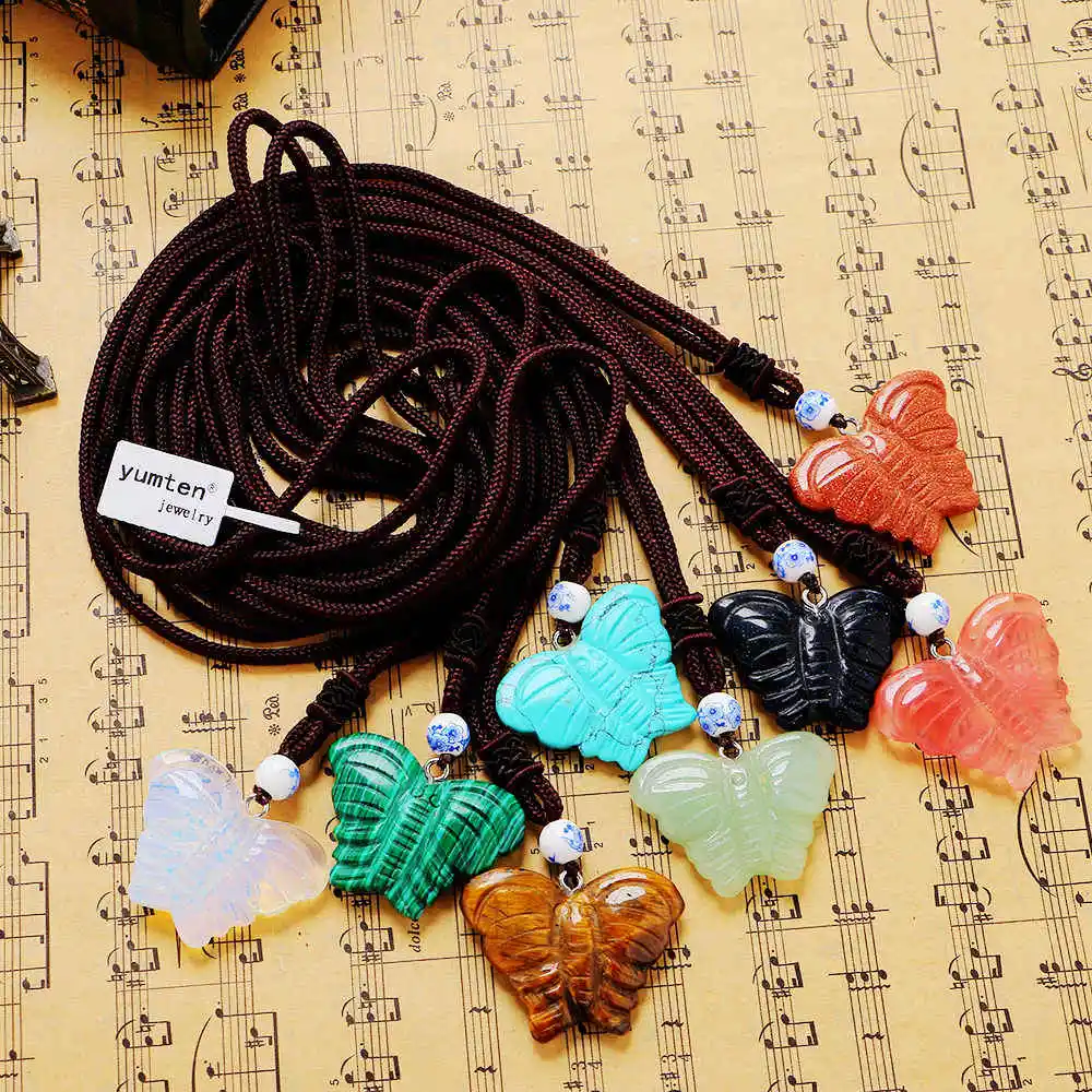Mix Color Natural Stone Butterfly Shape Charm Pendant Fit Necklace For Jewelry Making DIY 4*3cm Nylon rope pendant Long Necklace