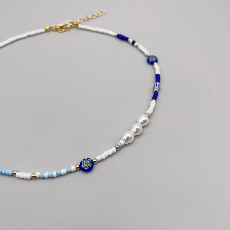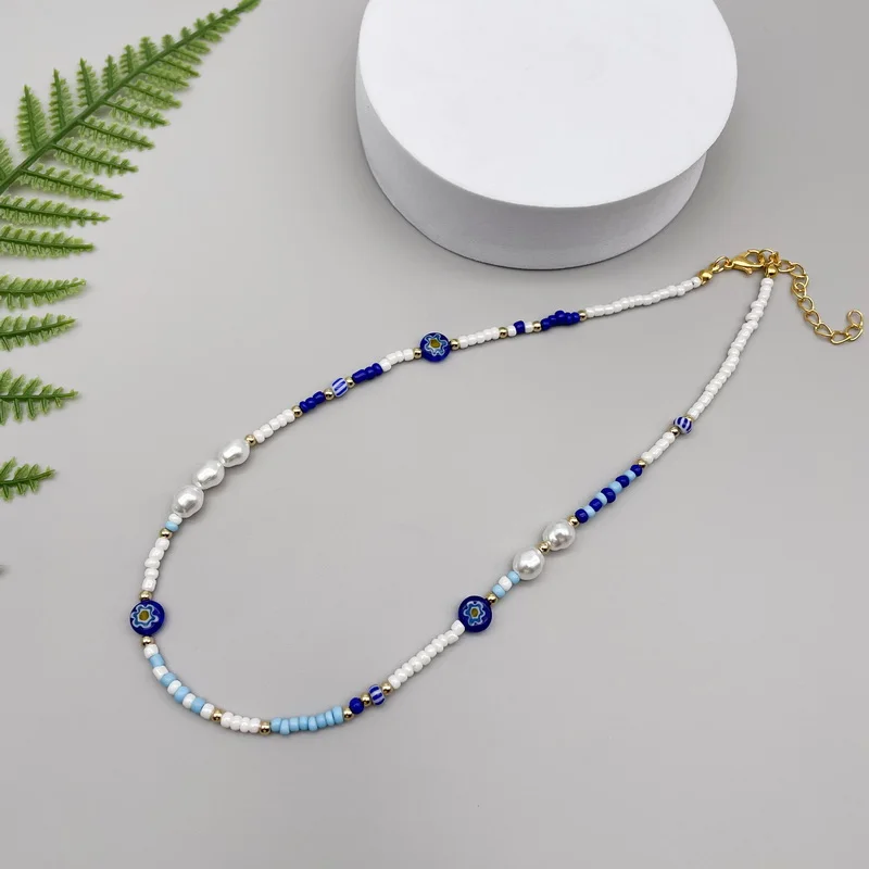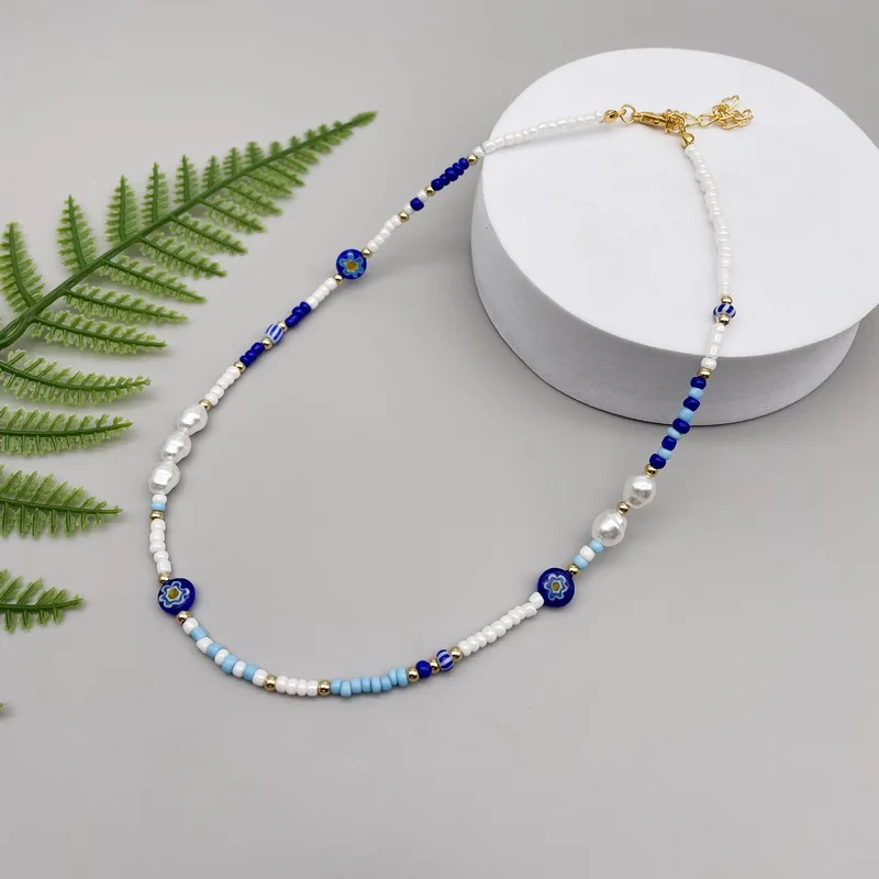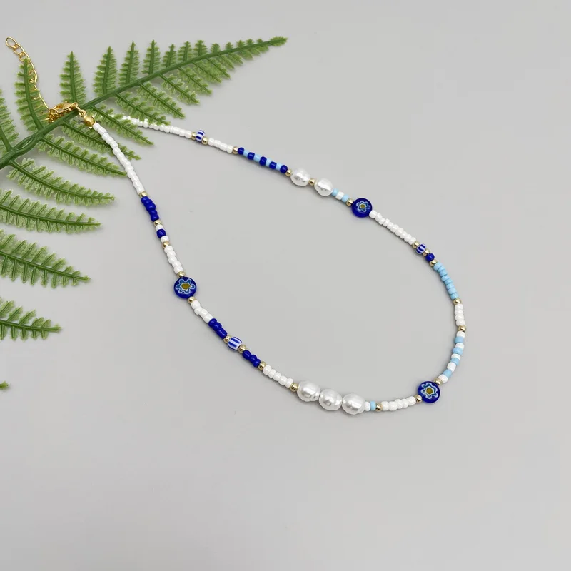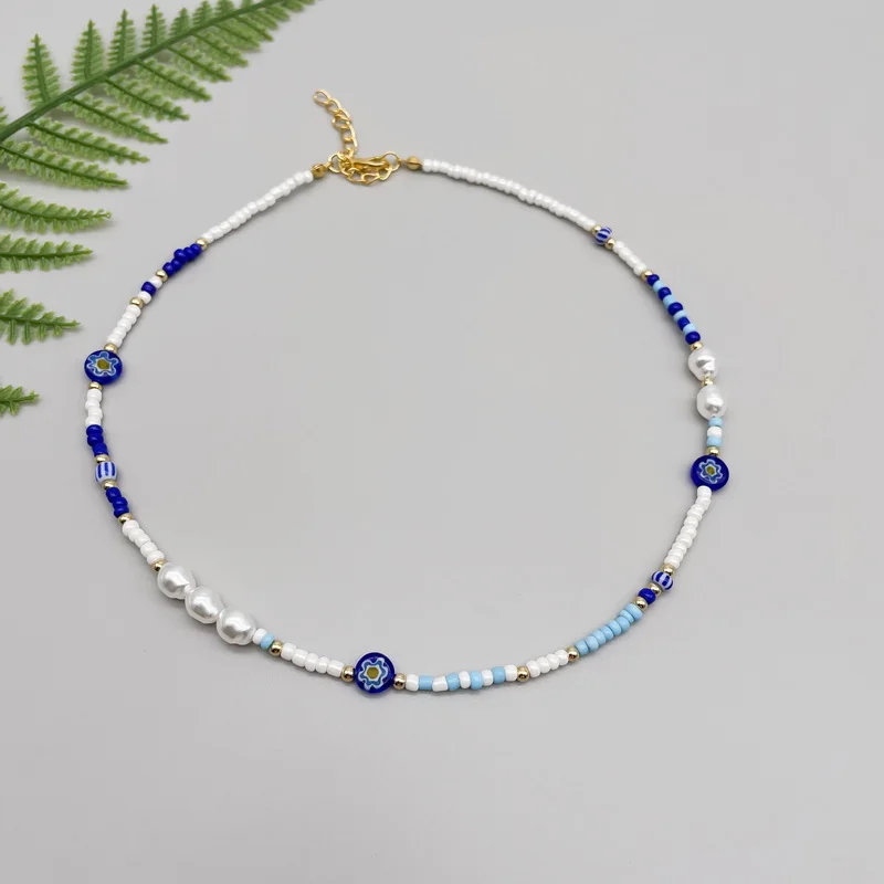 Mixed Beads Female Choker Necklace Gift 2021 Strand Flower Pearl Beaded Short Necklace For Women Girls Promotion Jewerly