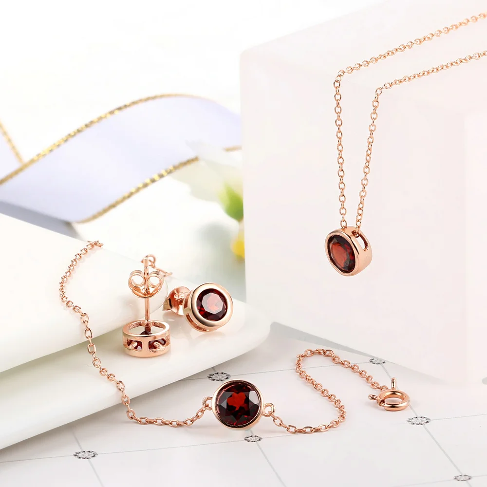 100%925 Sterling Silver Natural Gemstone Garnet Jewelry Sets For Women Gift Earring Bracelet Necklace Fine Jewelry V007EHN