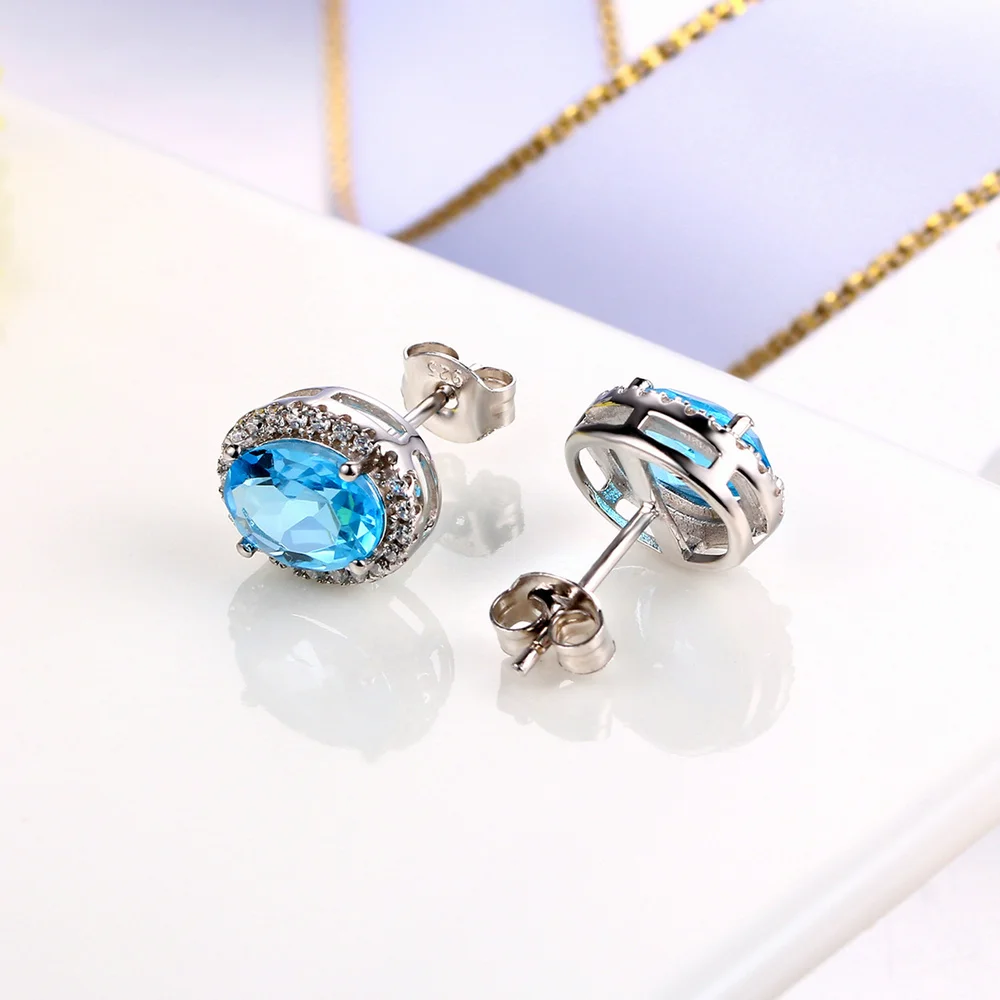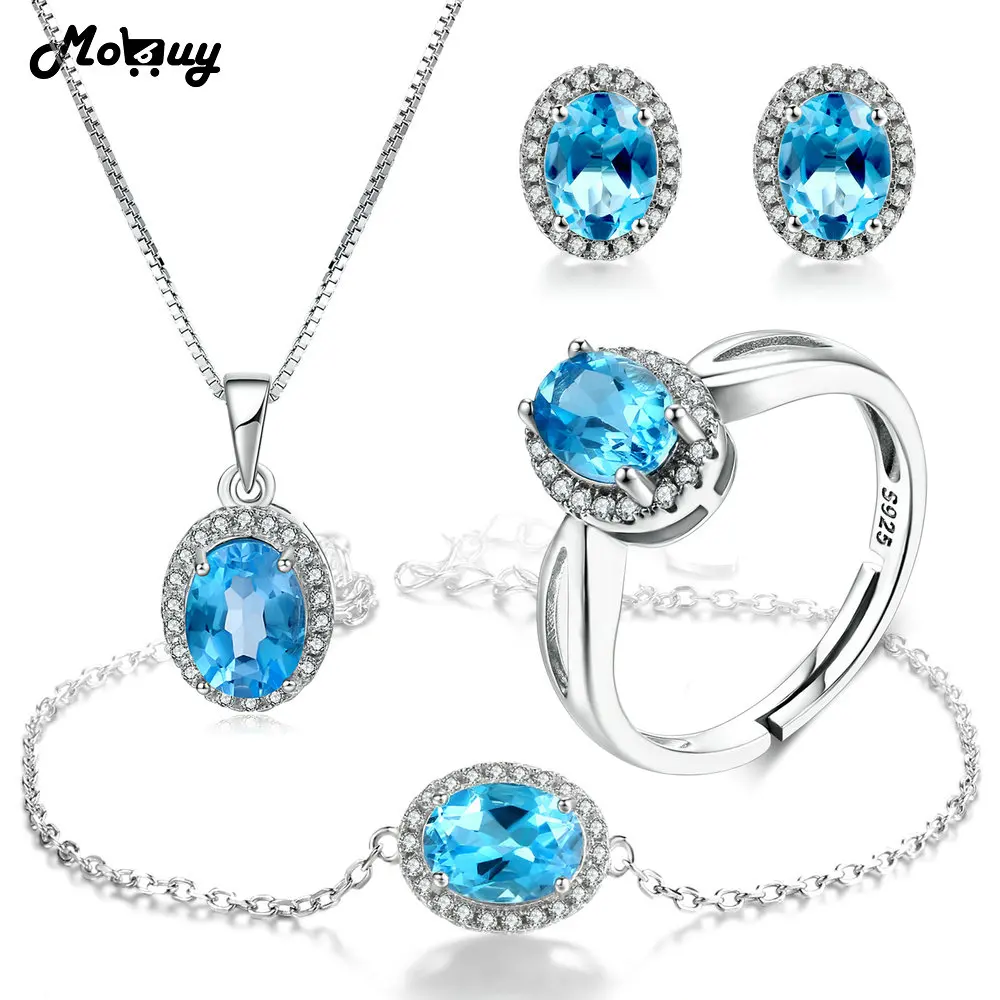 5pcs Natural Gemstone Blue Classic Topaz 4pcs Jewelry Sets 100% 925 Sterling Silver For Women Party Fine Jewelry V039EHNR