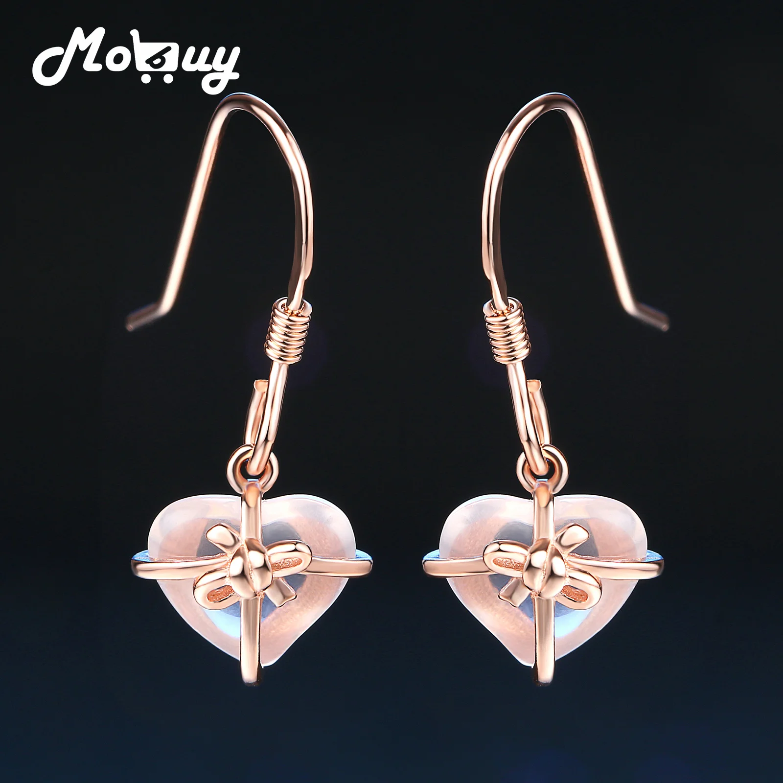 MBEI012 Love Heart 100% 925 Sterling Silver Jewelry Gemstone Rose Quartz Drop/Dangle Earring Rose Gold Plated For Women