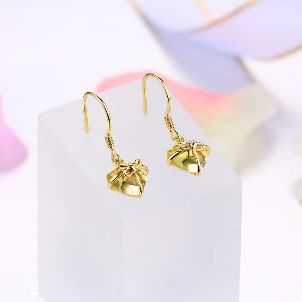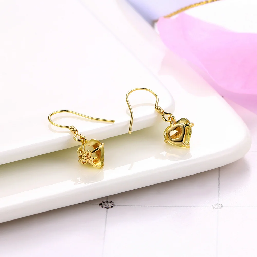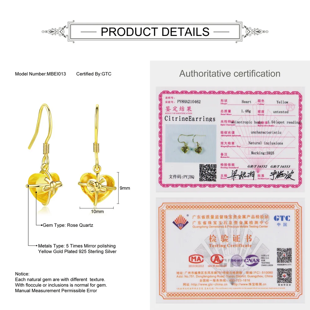MBEI013 Love Heart Gemstone Citrine Drop/Dangle Earrings 925 Sterling Silver 14K Yellow Gold Plated Fine Jewelry For Women