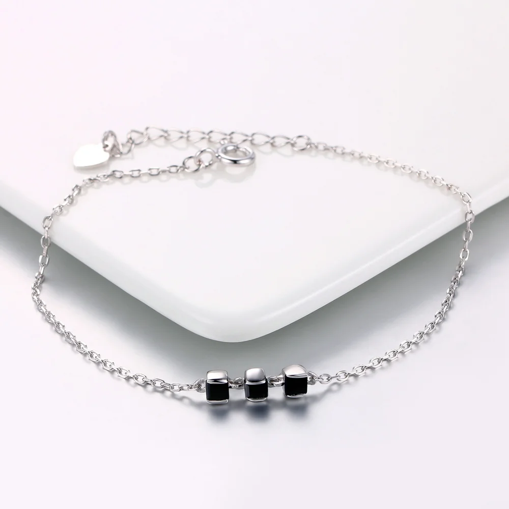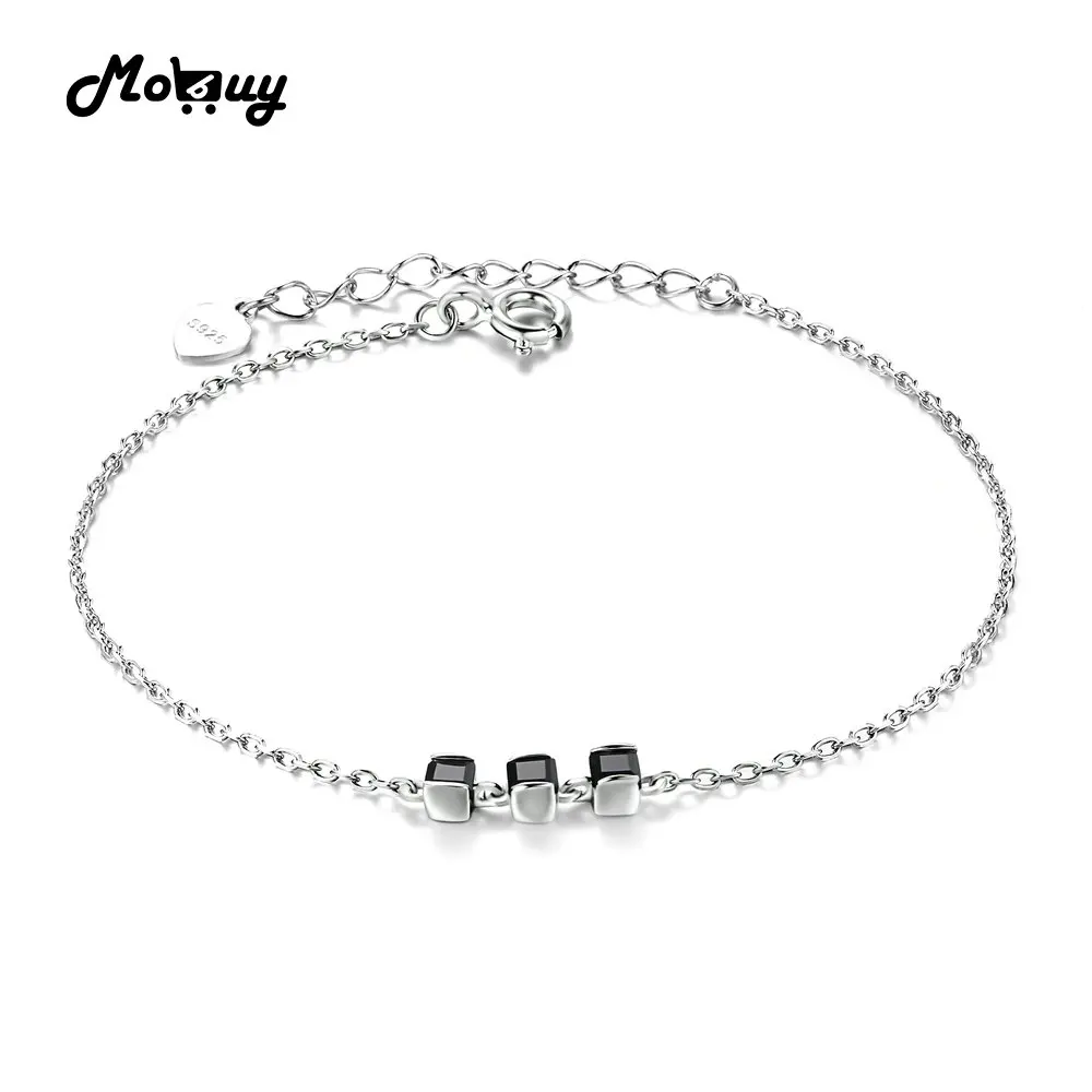 MBHI016 Simple Style Black Gemstone Chalcedony Bracelet & Bangles 925 Sterling Silver Jewelry White Gold Plated For Women