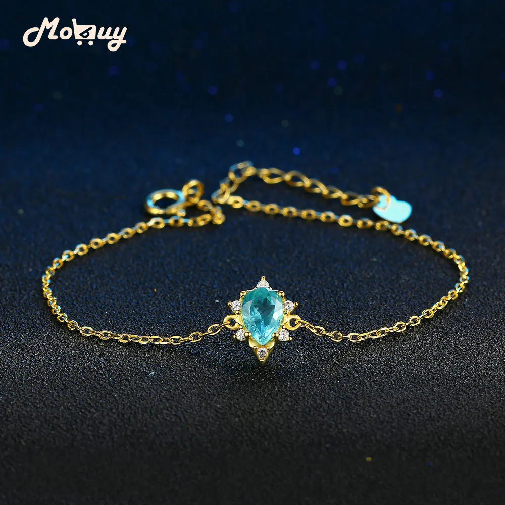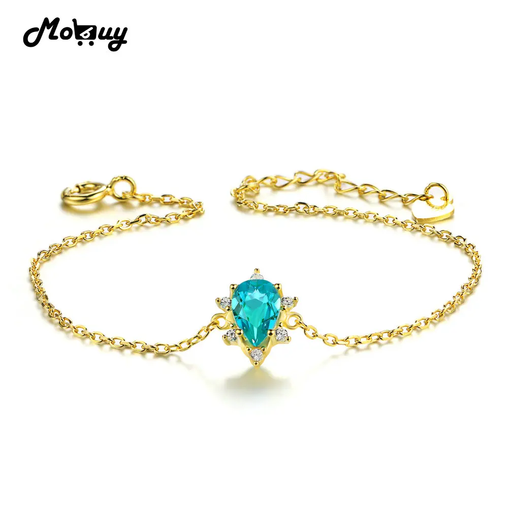 MBHI043 Natural Gemstone Apatite Bracelets & Bangles 925 Sterling Silver Yellow Gold Plated Fine Chain Jewelry For Women
