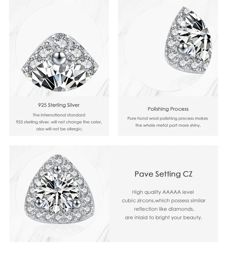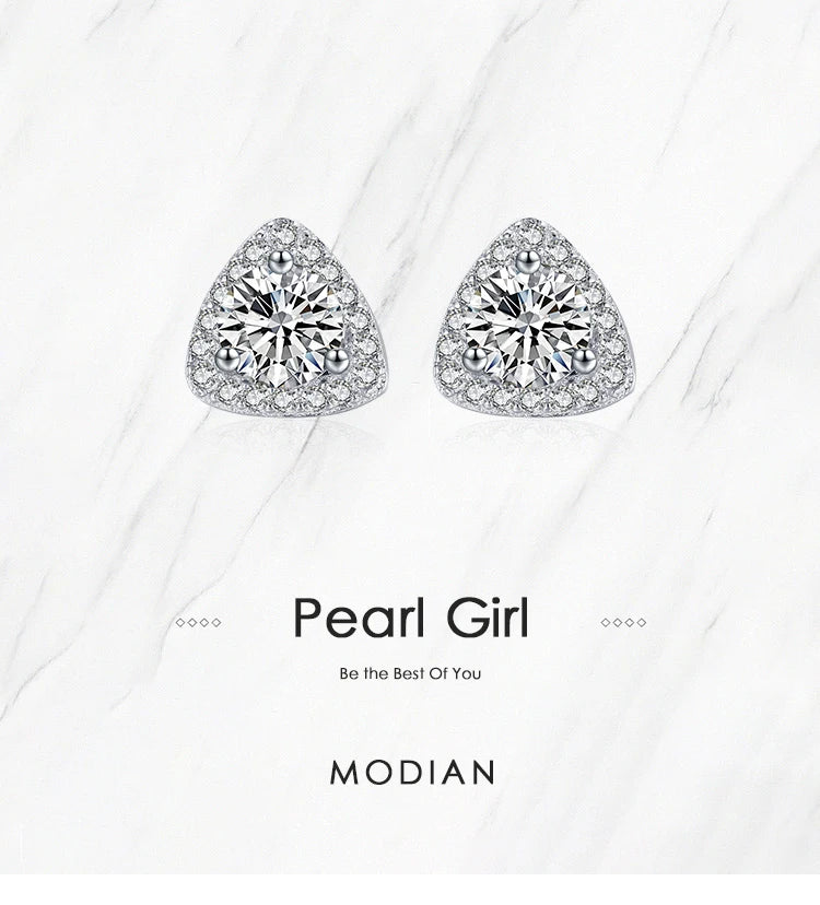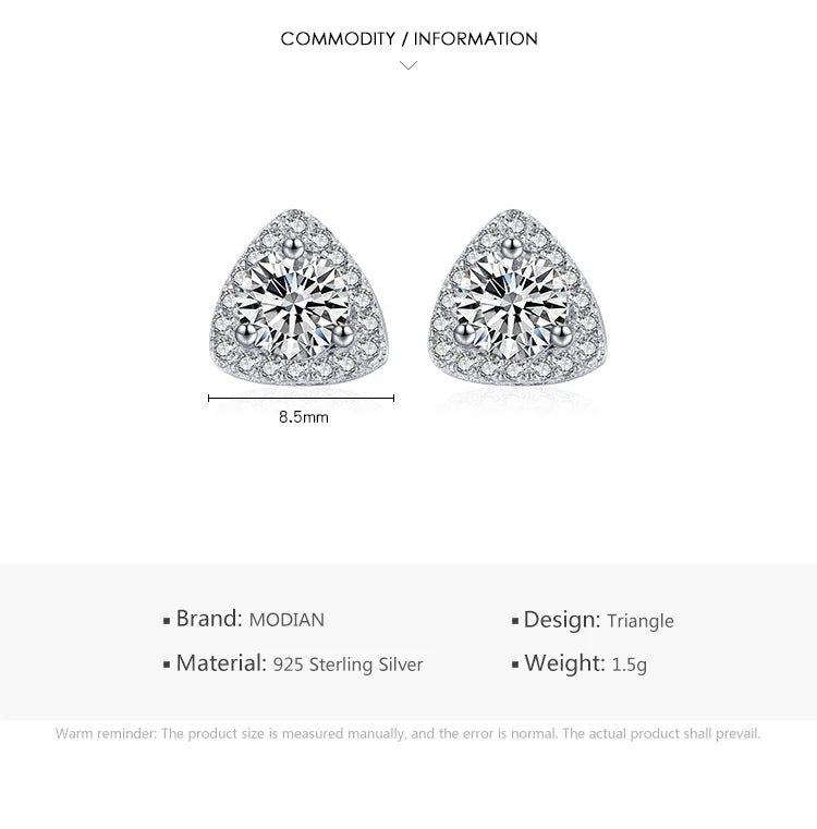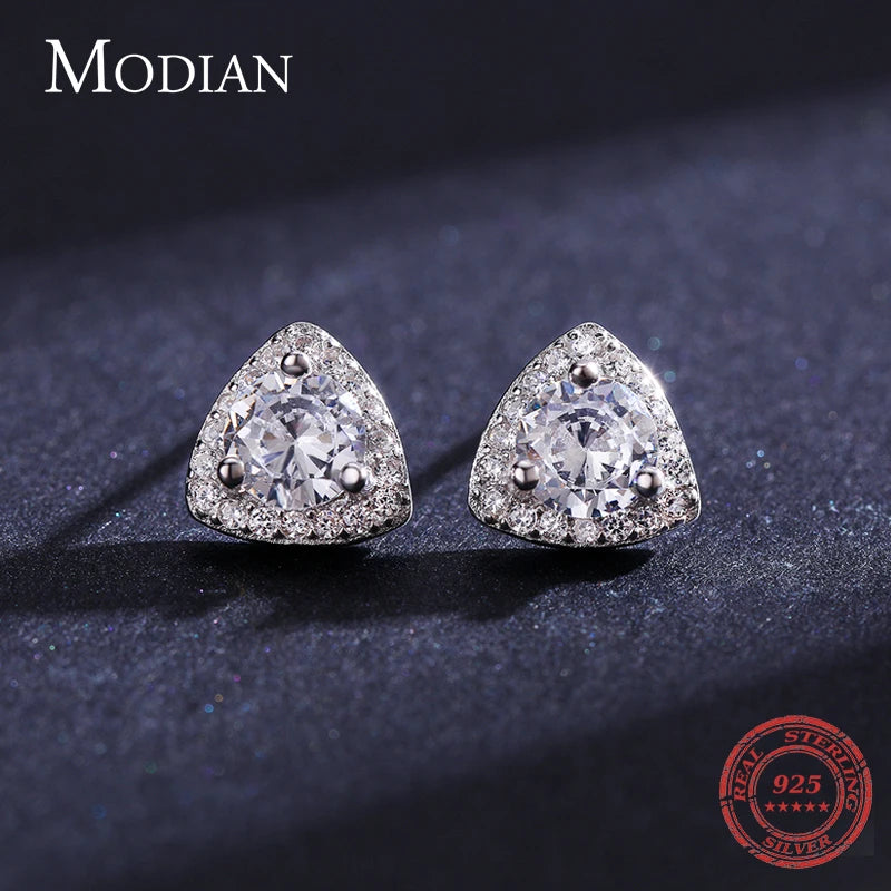 Modian 925 Sterling Silver Luxury Triangle Stud Earrings for Women Sparkling Clear Cz Ear Studs Fine Elegant Weddings Jewelry