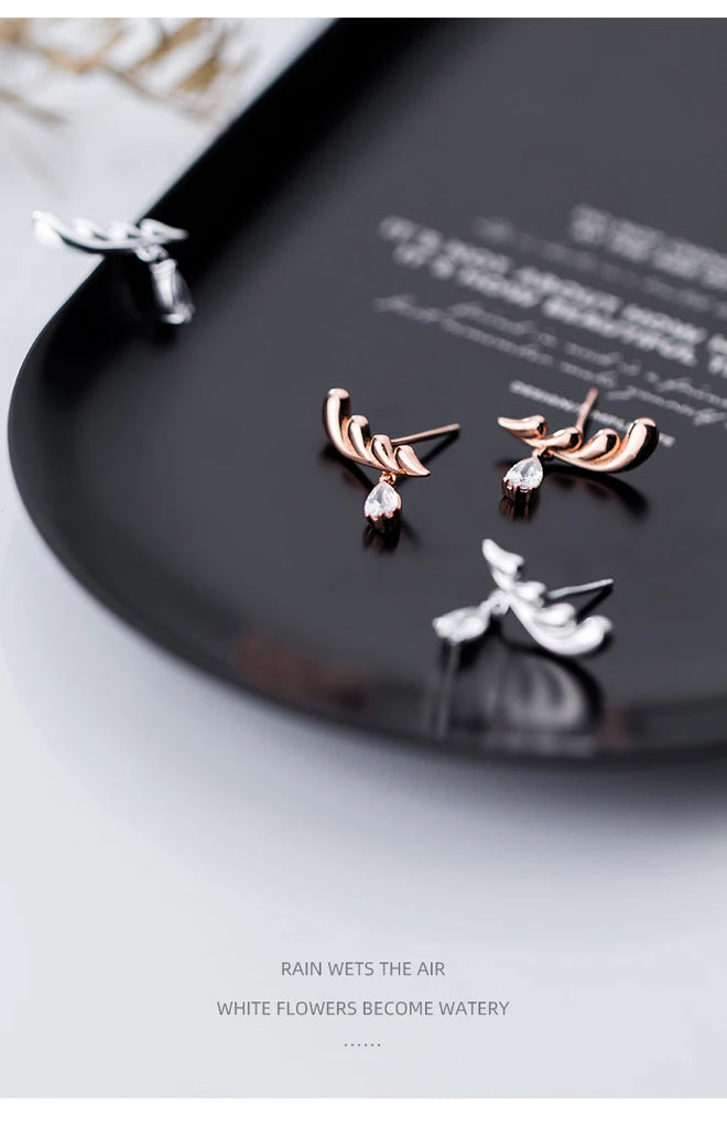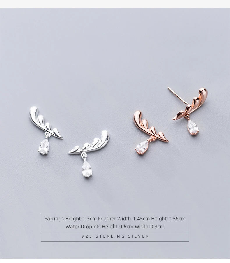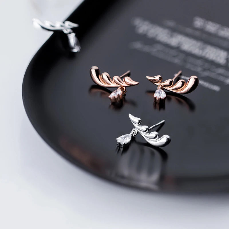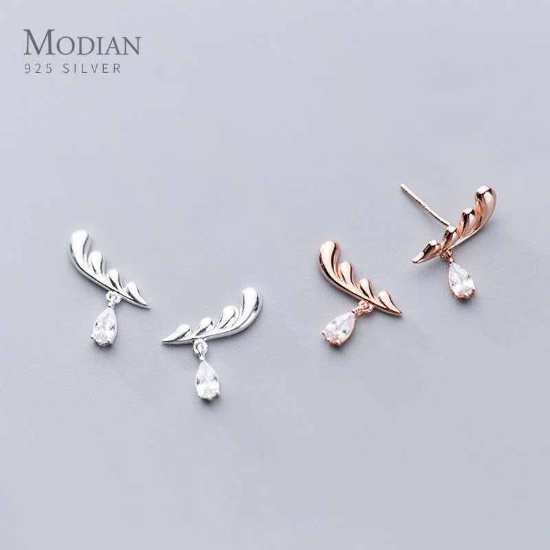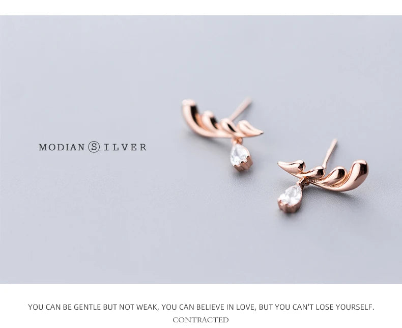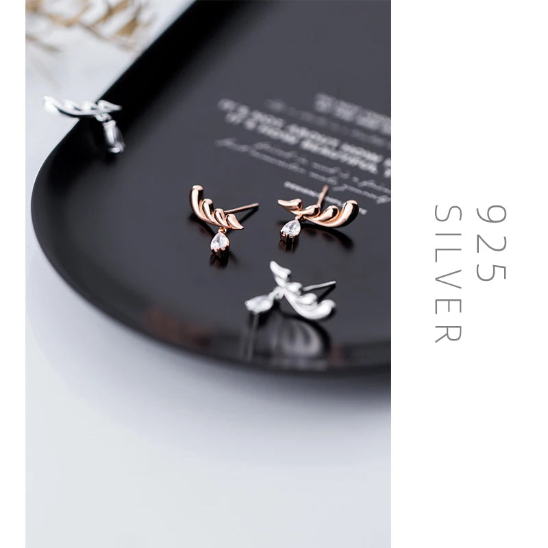 Modian Classic 925 Sterling Silver Angel Wings Rose Gold Color Charm Stud Earrings for Women Dazzling Cubic Zircon Jewelry