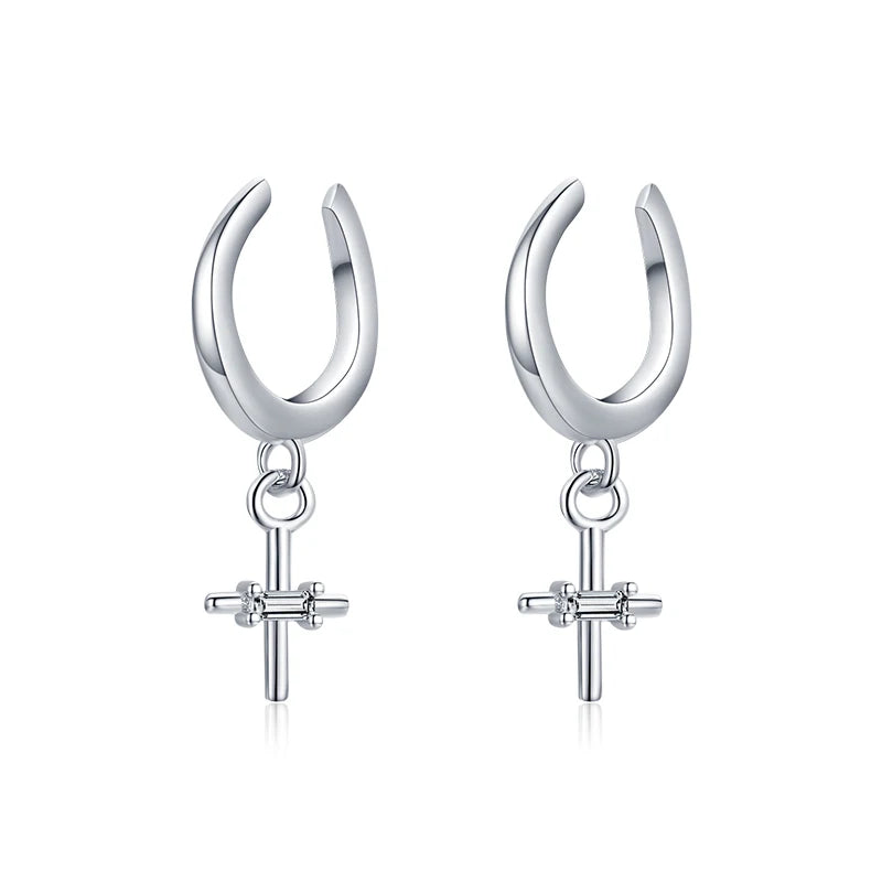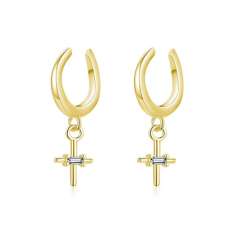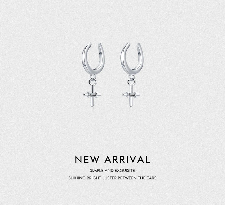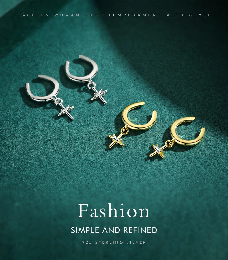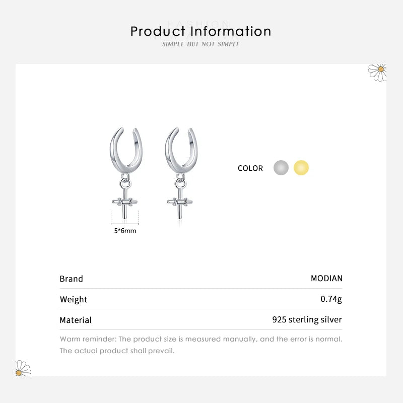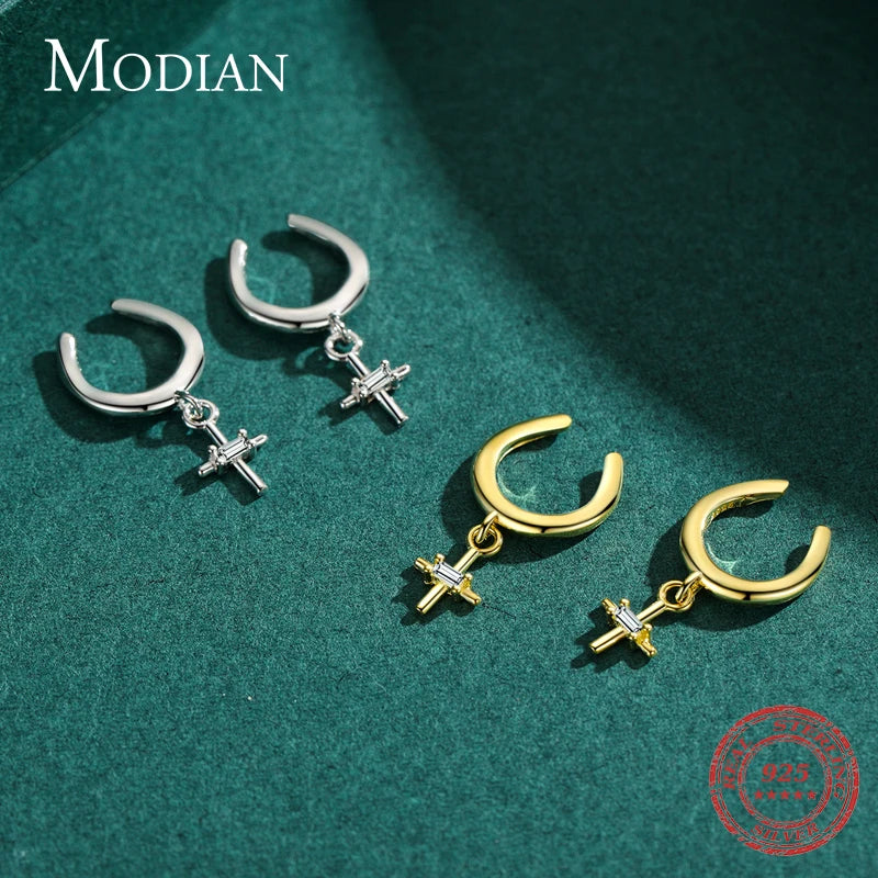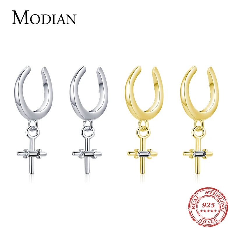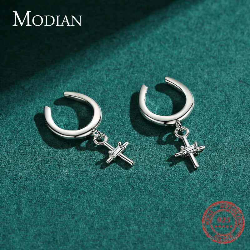 MODIAN Real 925 Sterling Silver Elegant Simple Cross Clip Earrings Swing Party Ear Cuff For Women Statement Fine Jewelry