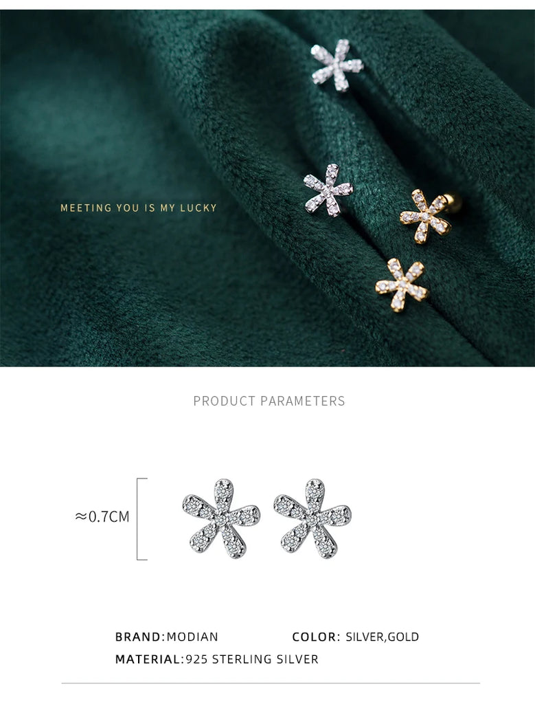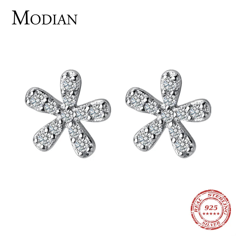 Modian Real Sterling Silver 925 Classic Flower Stud Eearrings for Women Clear CZ Gold Color Ear Pins Studs Fine Charm Jewelry
