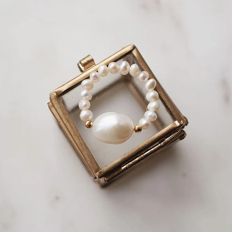 Momiji Bohemian Bead Rings Section Multi Color Natural Stone Jewelry Handmade Gifts Women Girls Wedding Rings Elastic Adjustable