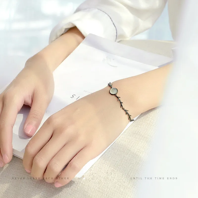 Moonlight Forest Chalcedony Bracelets For Women Original Design S925 Sterling Silver Jewelry Black Gold Plated Girl Bracelet