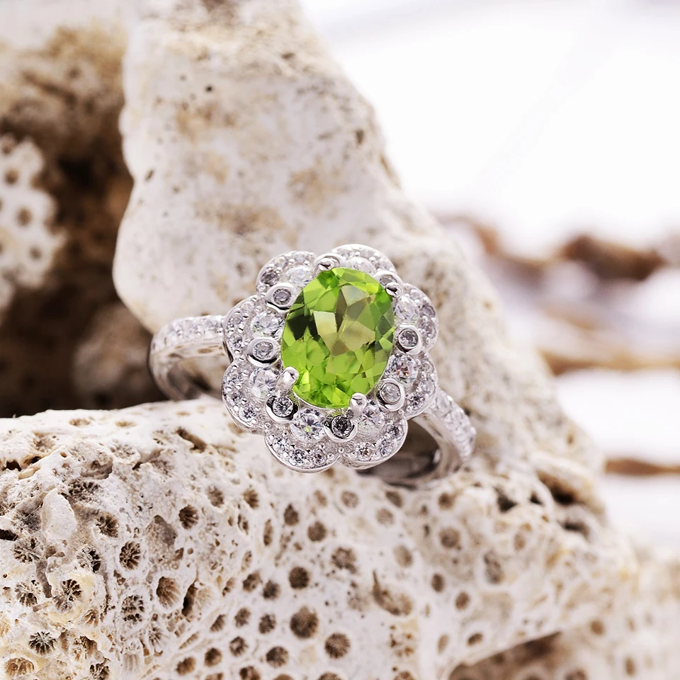 Princess Diana William Kate Middleton's 1.2ct Natural Peridot Rings For Women Wedding Engagement 925 Sterling Silver Ring