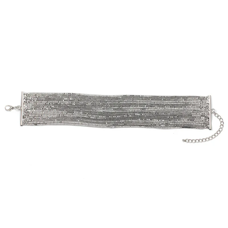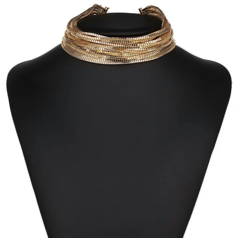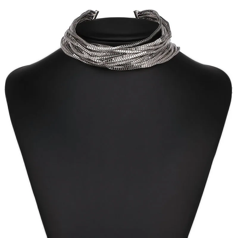 Most Popular Women Jewelry Accessories Punk Gold&Silver Color Multi Layer Alloy Chain Choker Necklace for Party Gift