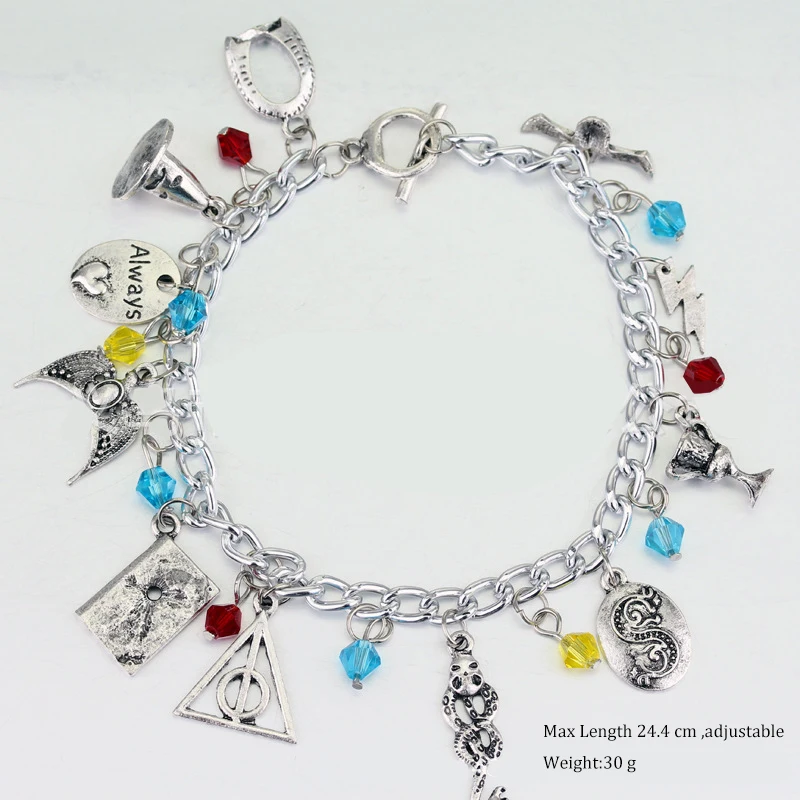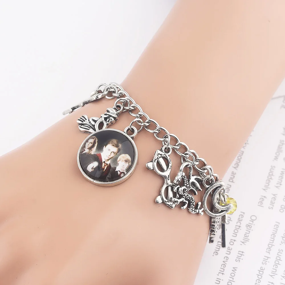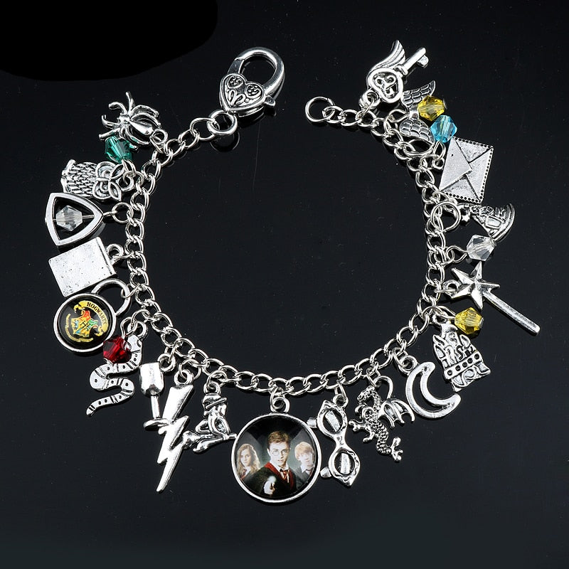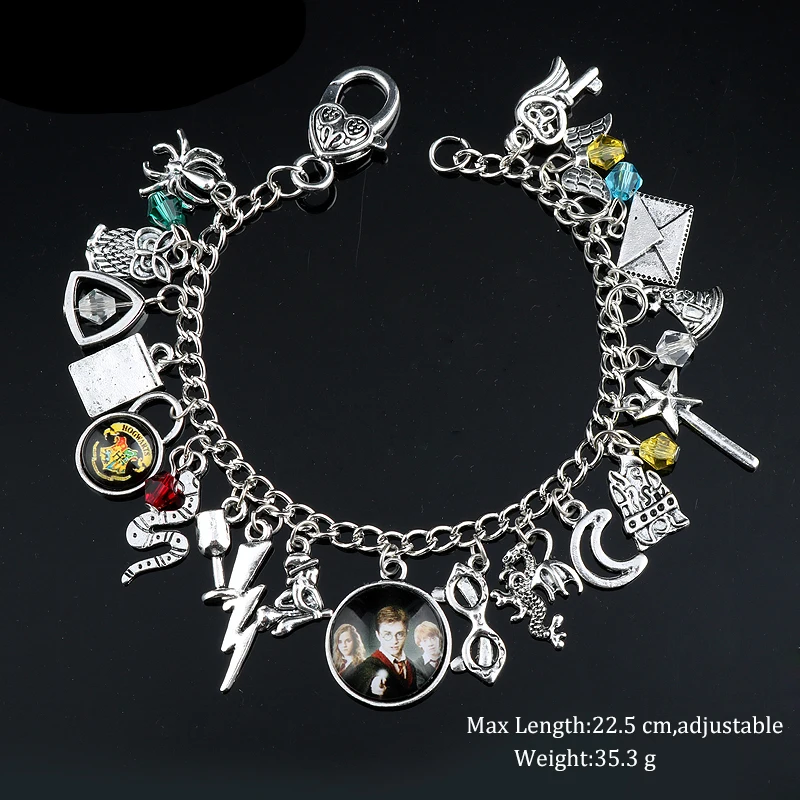 Movie Magic School Bracelet for Women Golden Snitches Owl Hat Car Broom Pendant Jewelry Alloy Bracelets for Girls Gift