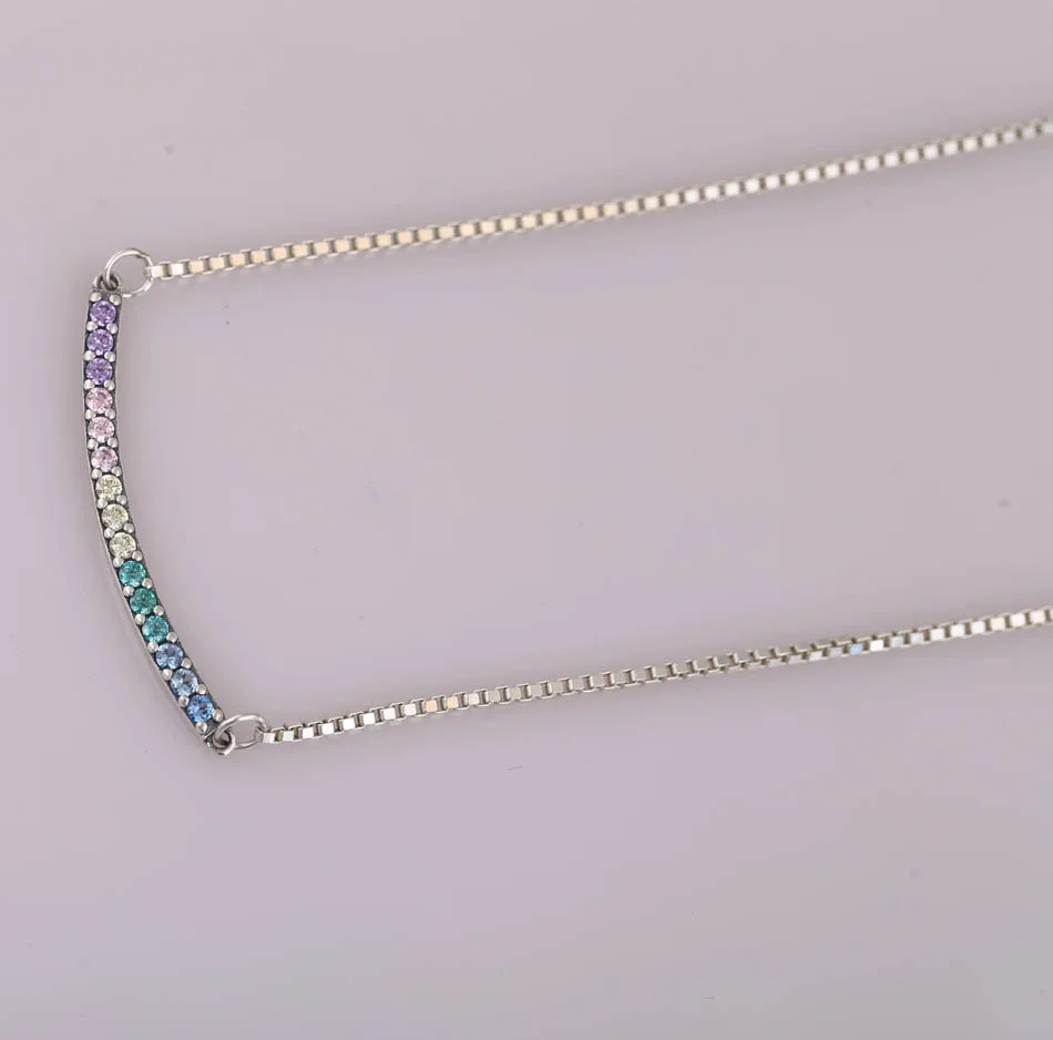 Multi-Colored-Curved-Bar-Necklace-925-Silver-Necklace-For-WomenSilver-Girl-Fashhion-Choker-fit-Lady-Jewelry