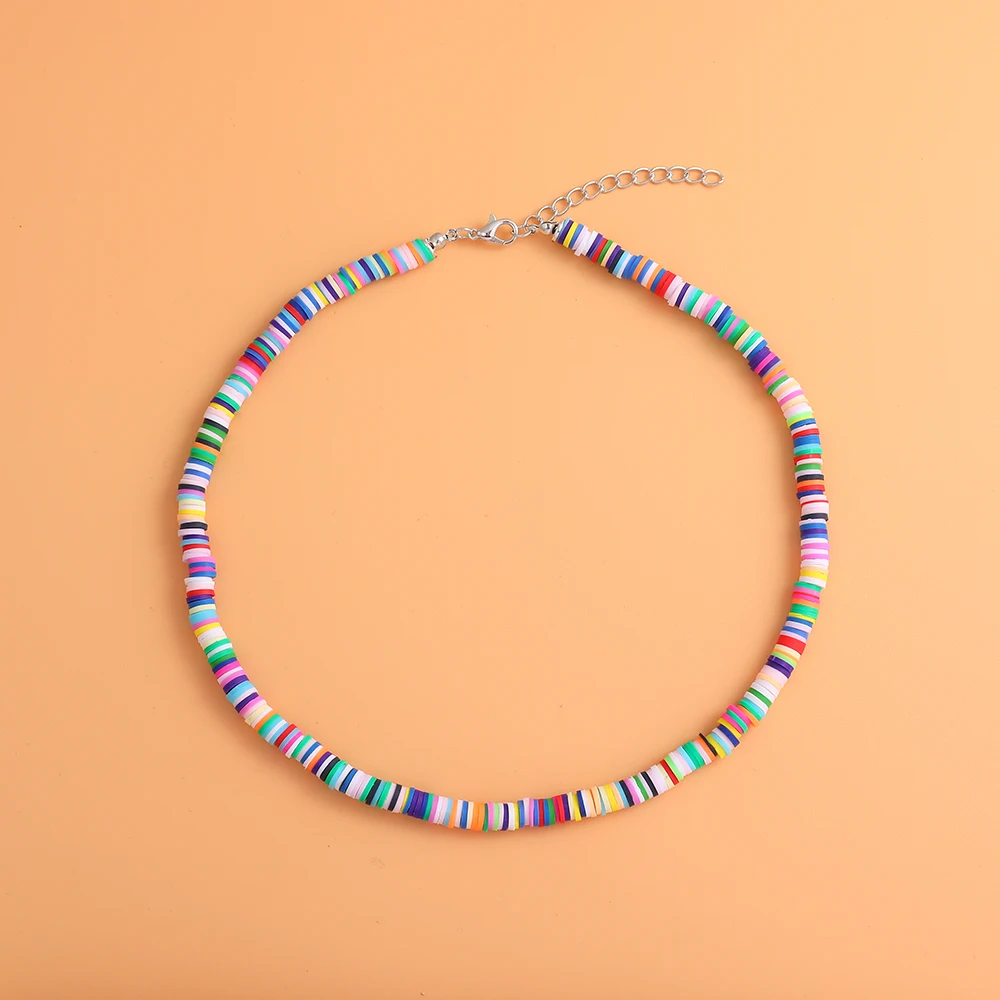 Multicolor Polymer Clay Choker Necklace for Women Boho Soft Pottery Handmade Collar Necklace Holiday Jewelry Beach Accessories