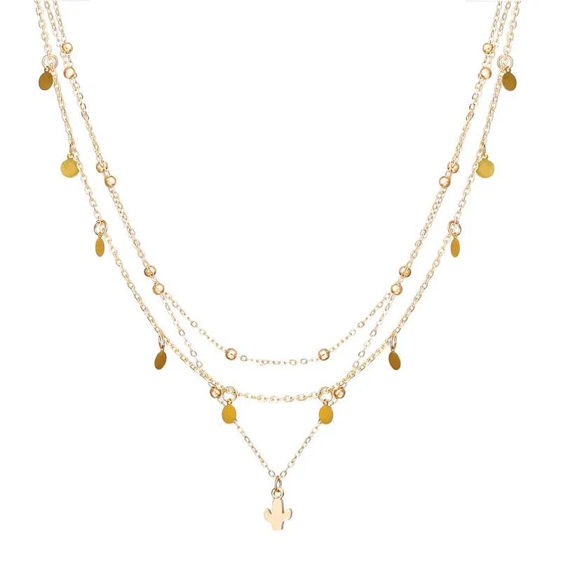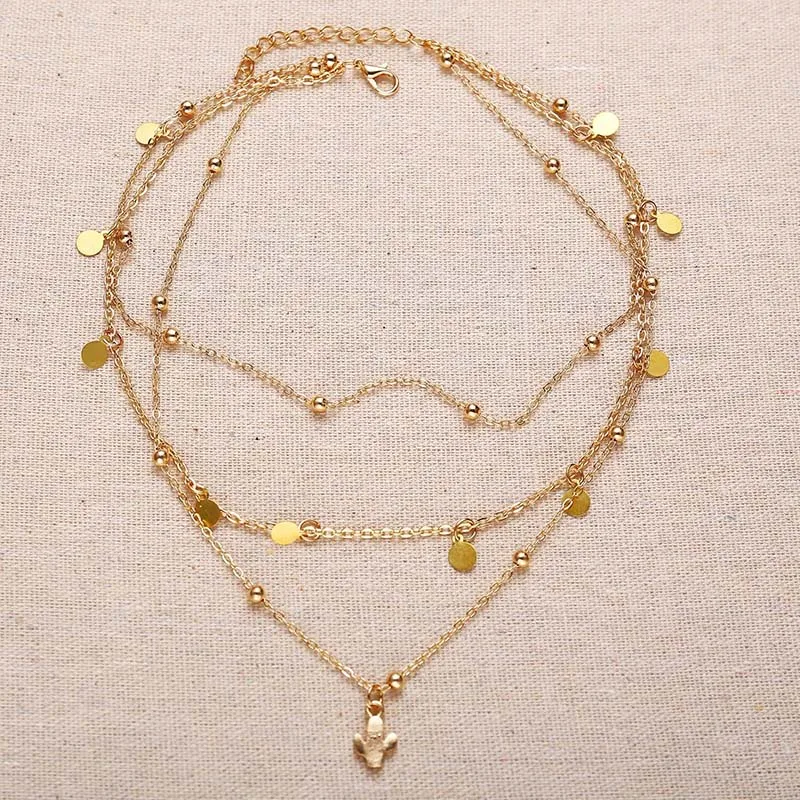 Multilayer Cactus Necklace Gold Silver Color Star Chain Necklaces for Women Bohemian Jewelry Accessories Friends Gift