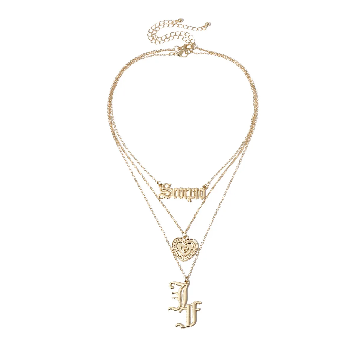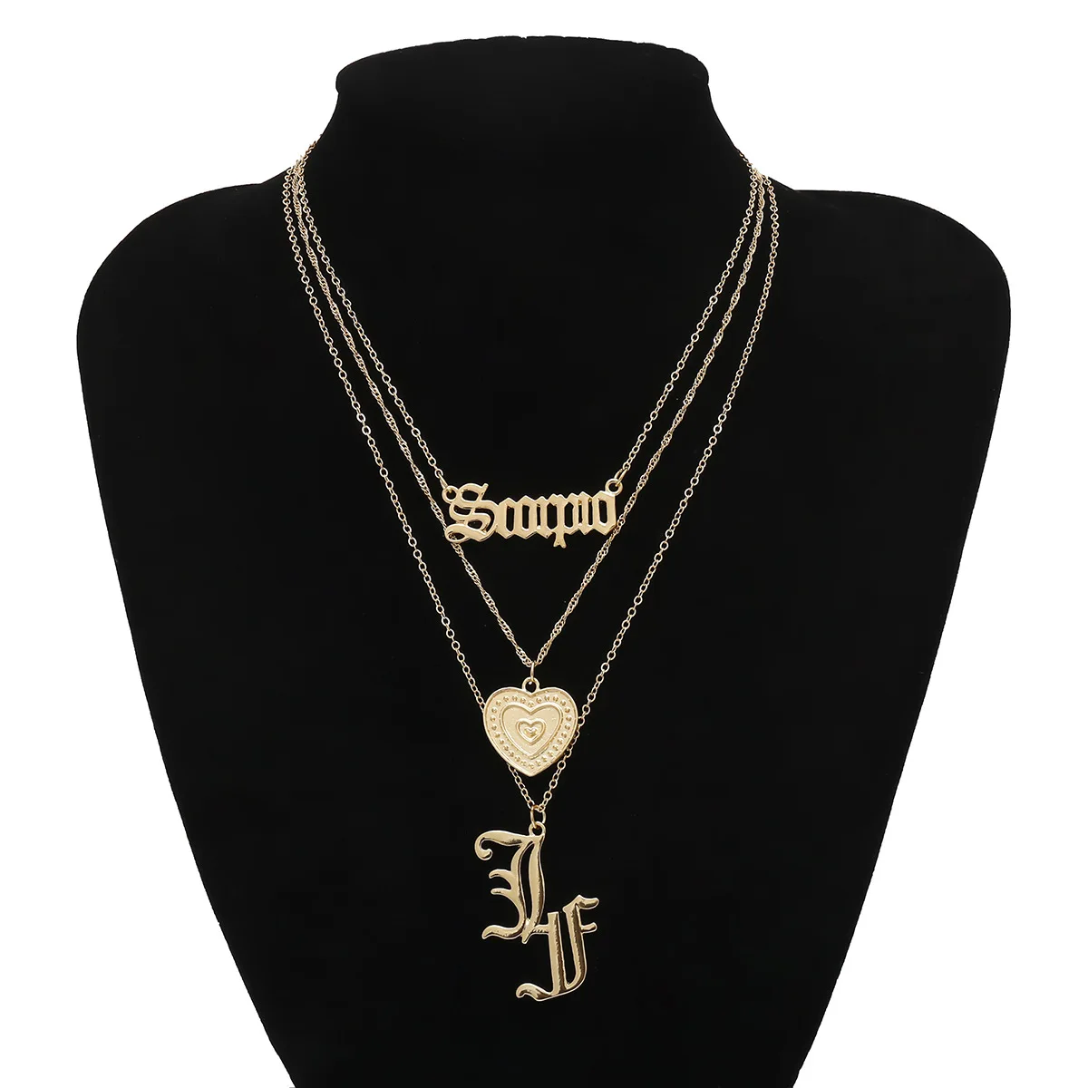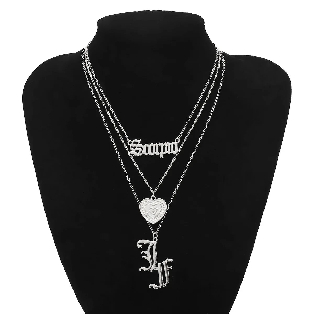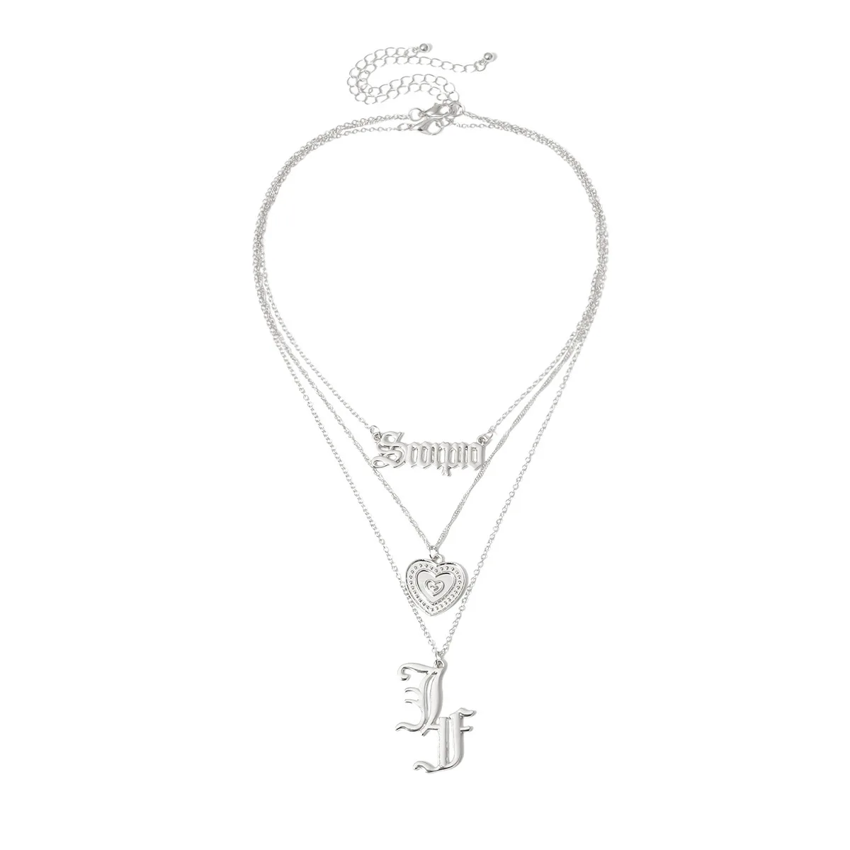 Multilayer Crystal Pendant Necklace Women gold SILVER Color Heart pendant shaped lettering pattern Choker Necklaces Jewelry