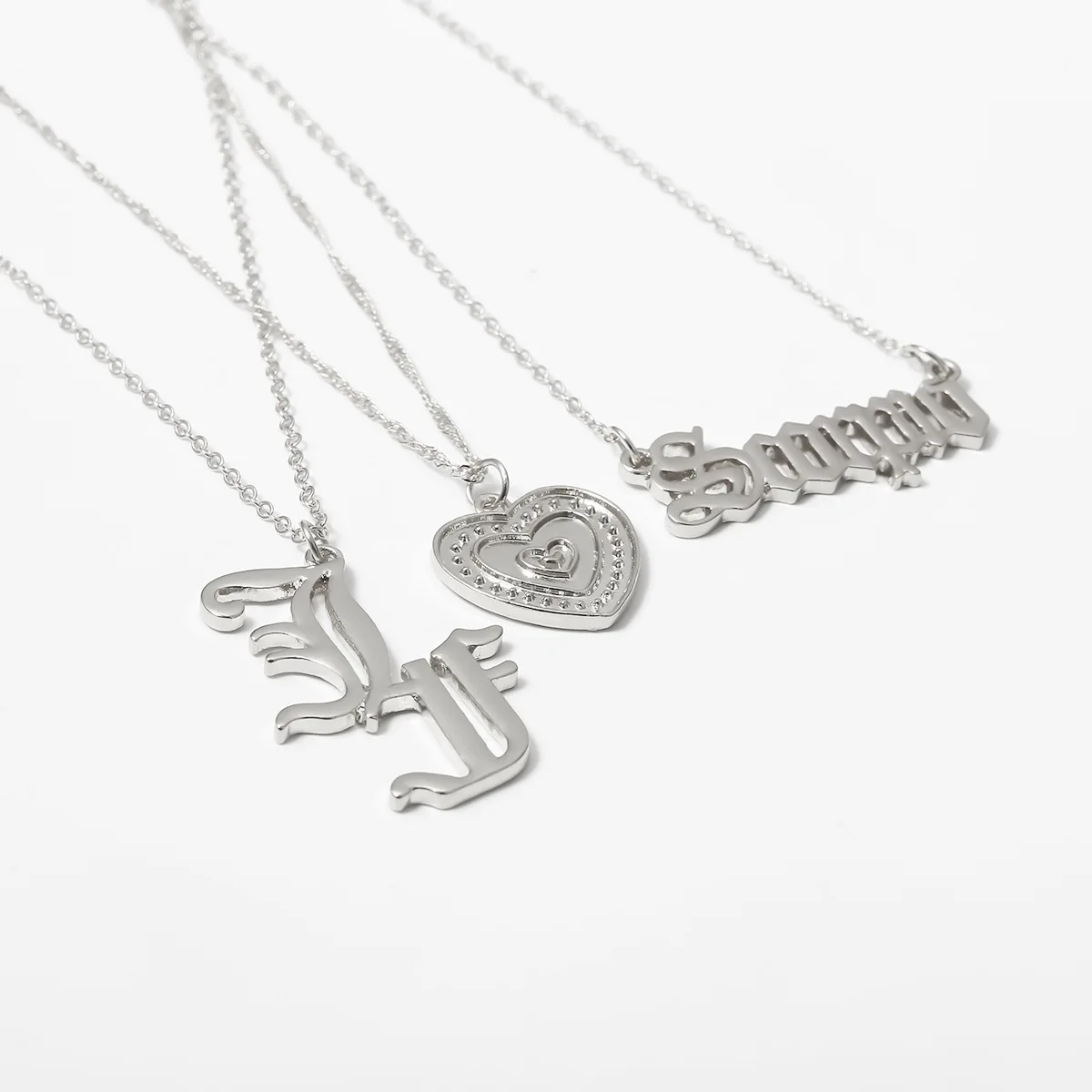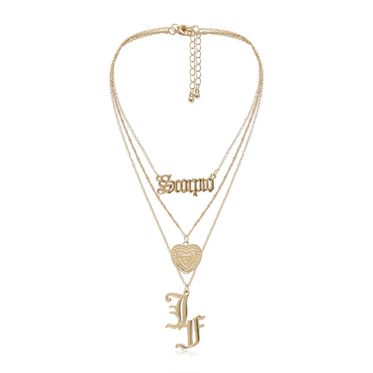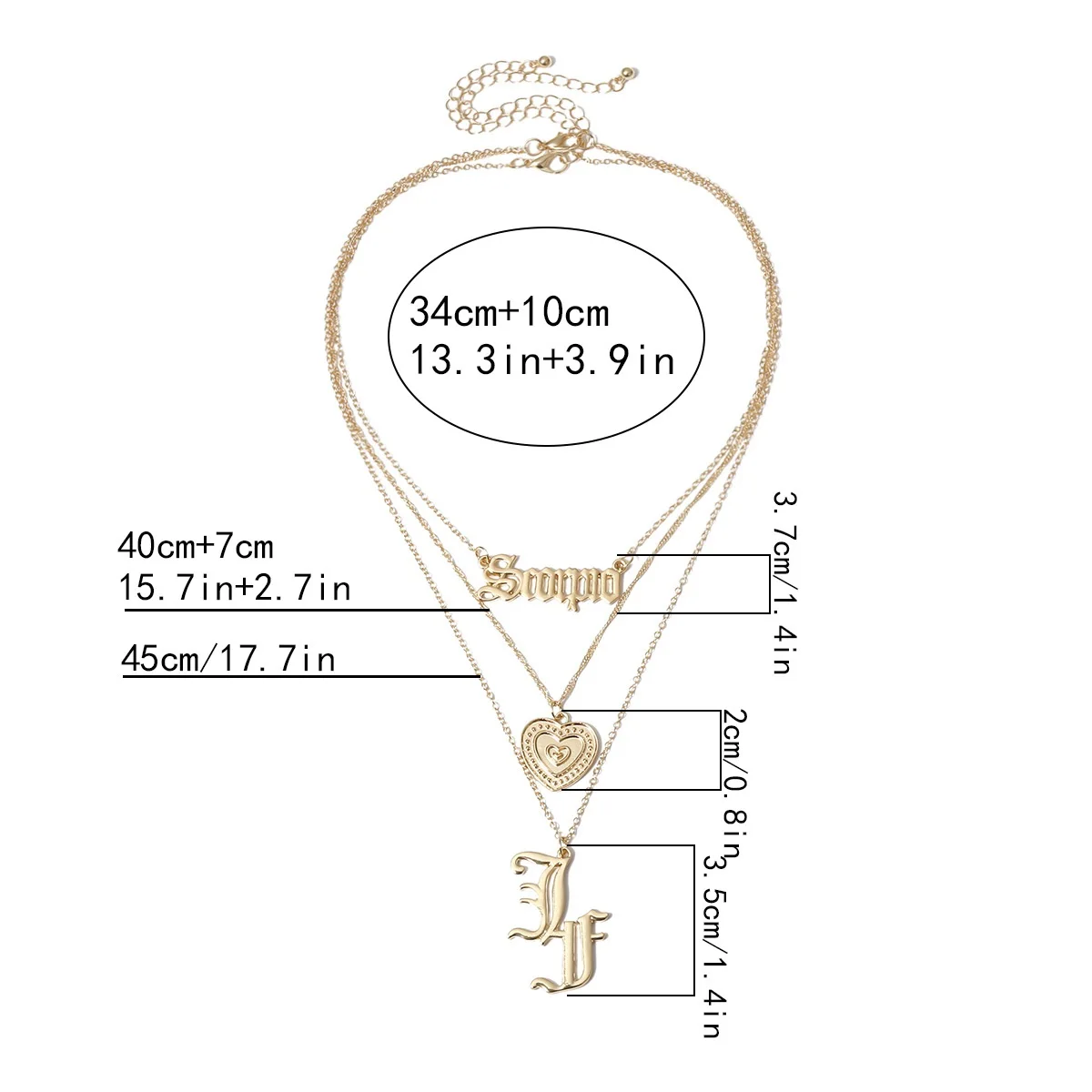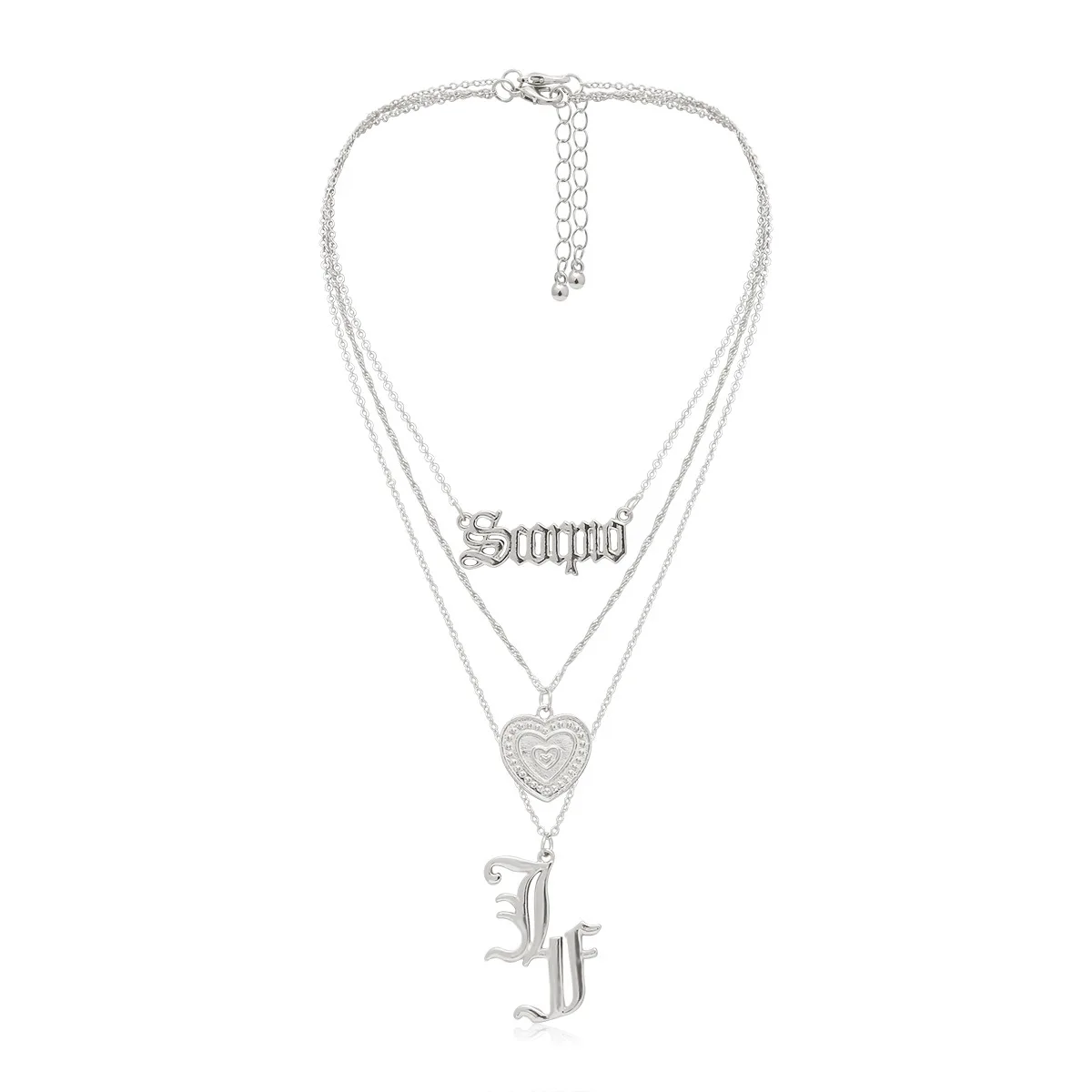 Multilayer Crystal Pendant Necklace Women gold SILVER Color Heart pendant shaped lettering pattern Choker Necklaces Jewelry