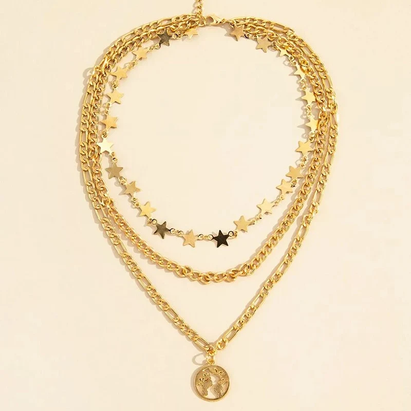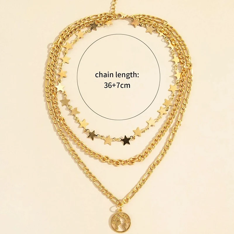 Multilevel Elegant Gold Map Pendant Jewelry For Women Wedding Tassel Star Chain Choker Necklaces N0274