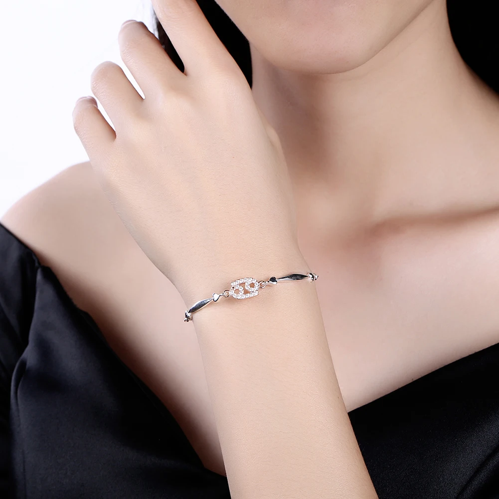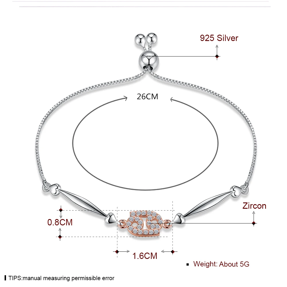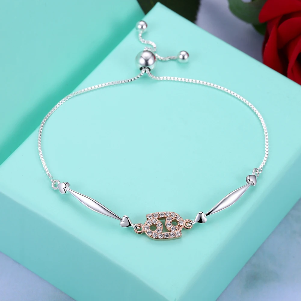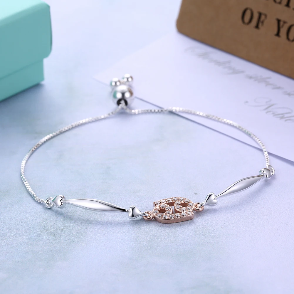 Constellation Series Cancer Style 925 Sterling Silver Jewelry Zircon Rose Gold Color Adjustable Bracelet for Women SVSZ3900