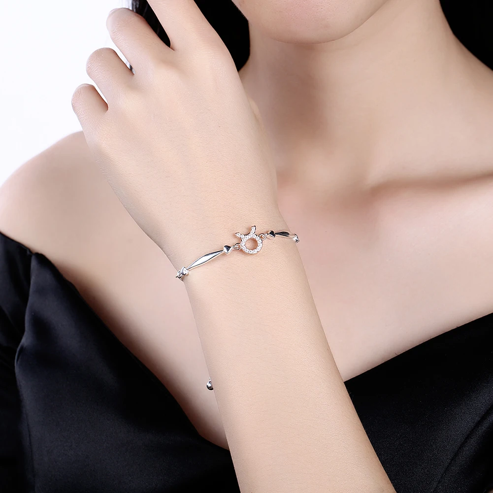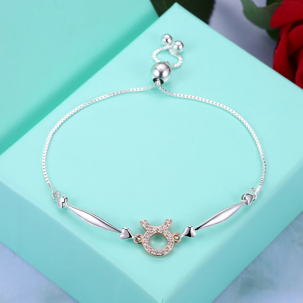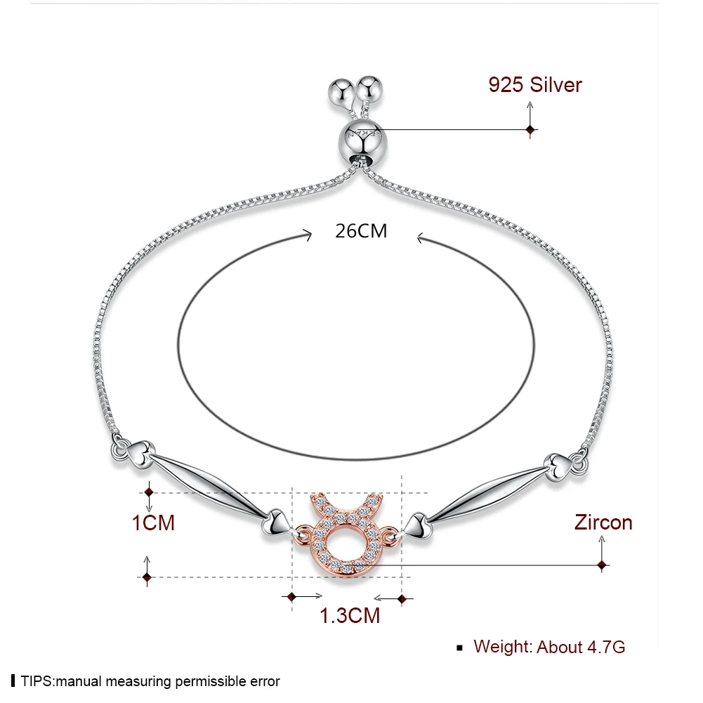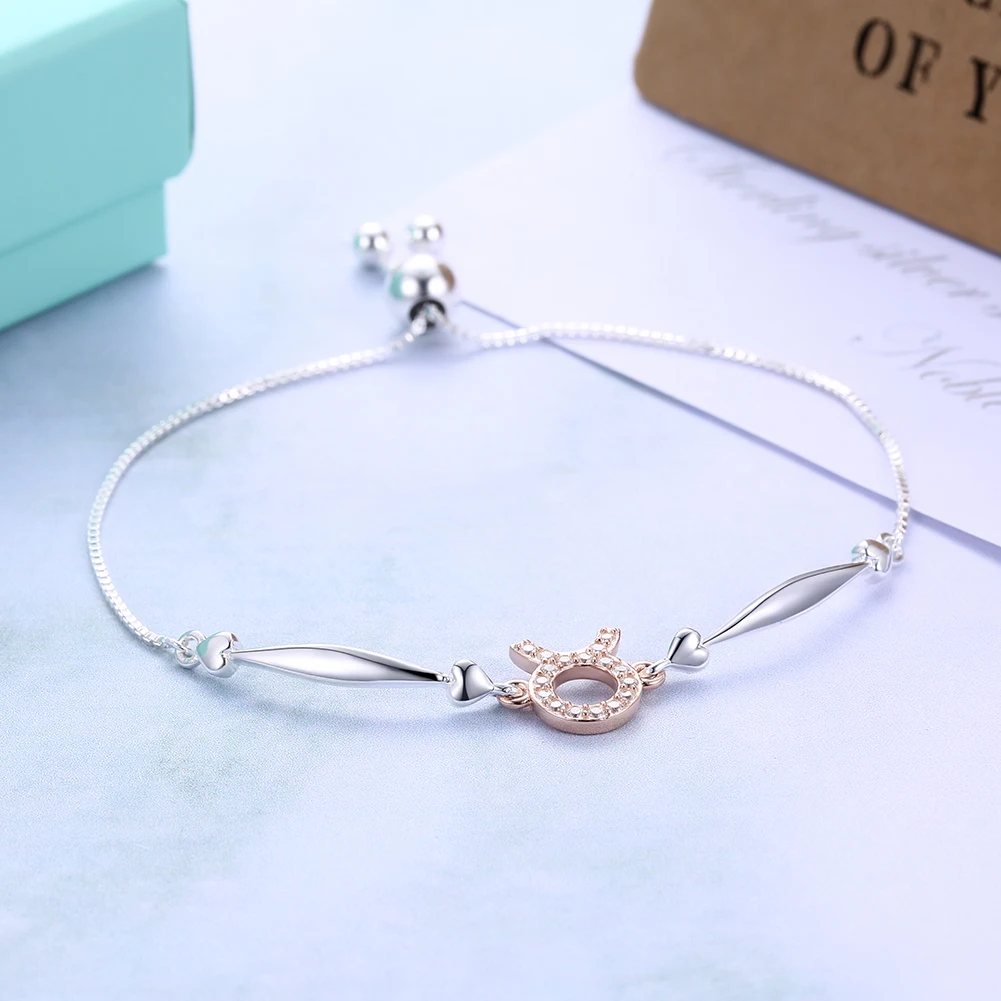 Constellation Series Taurus Style Rose Color Charm 925 Sterling Silver Jewelry Women Bracelets & Bangles SVSZ3906