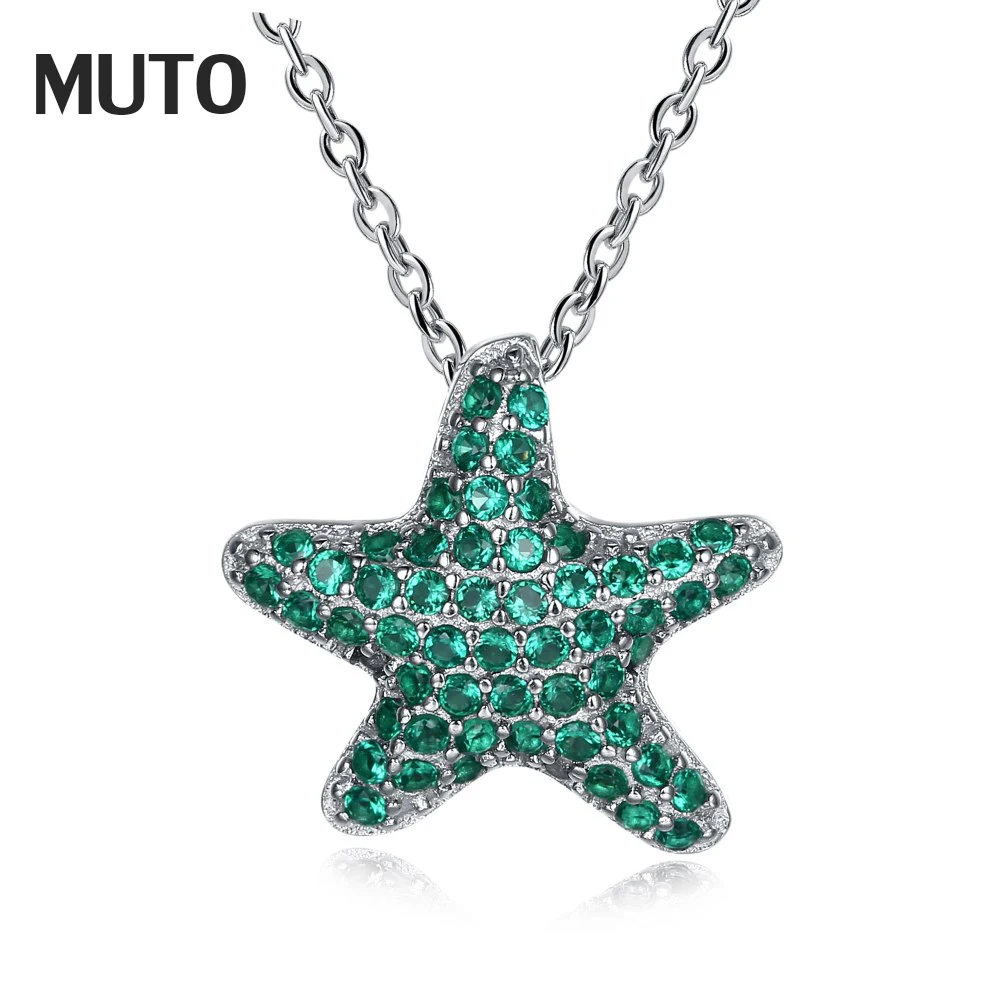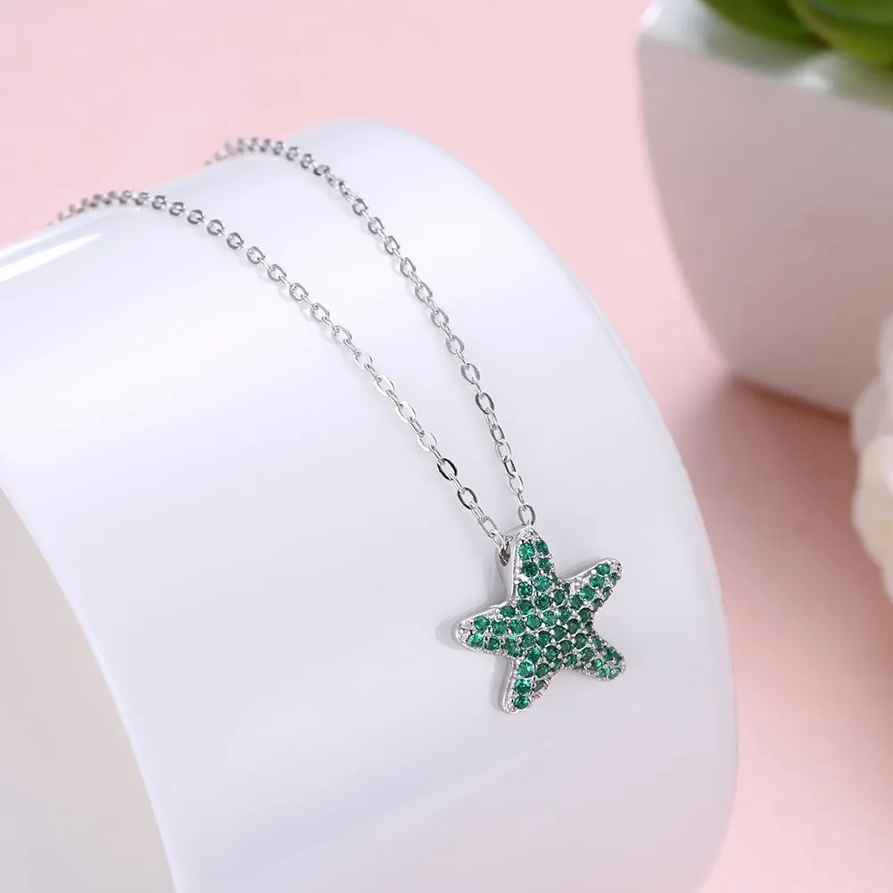 Green Color Star 925 Sterling Silver Pendant Necklace for Women Party Fine Jewelry Dropshipping Wholesale SVXL1953
