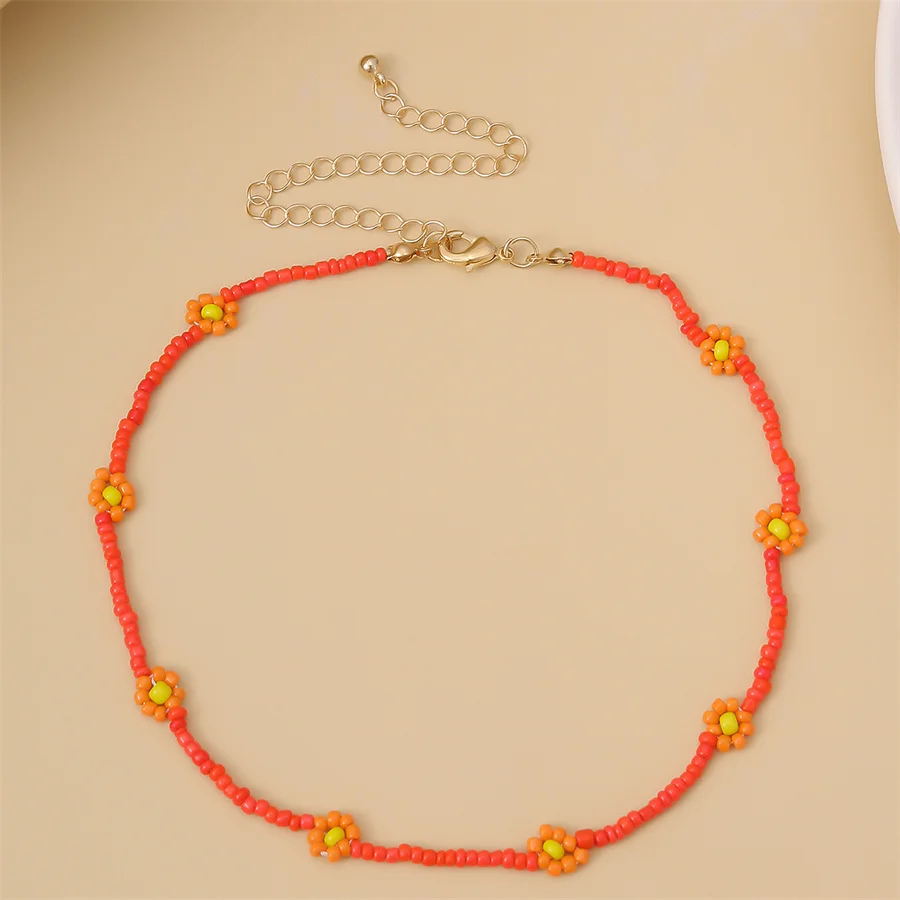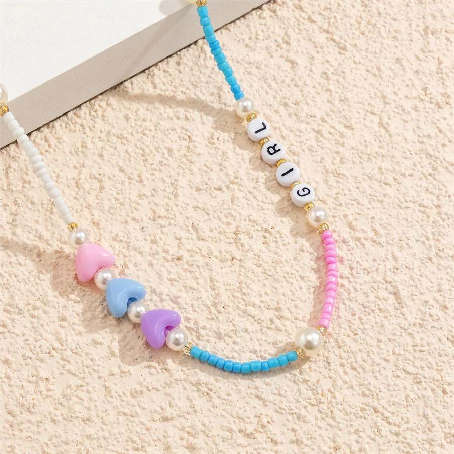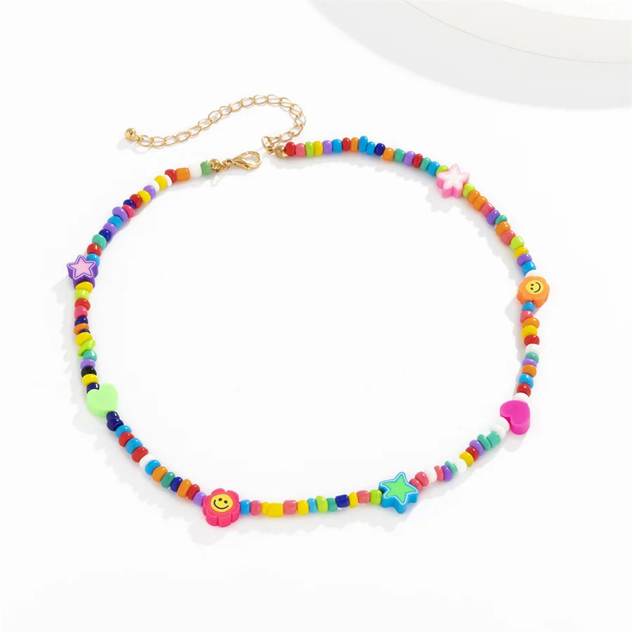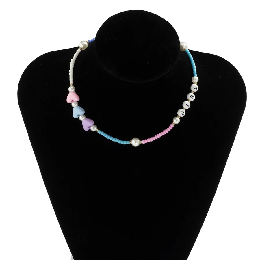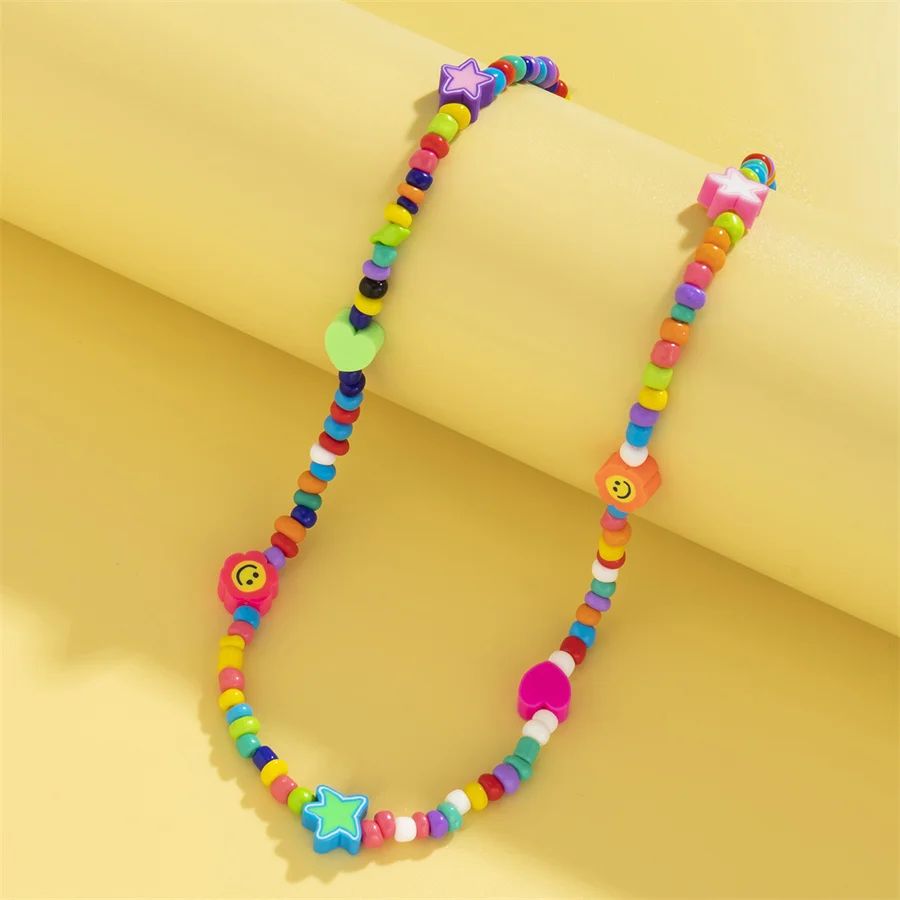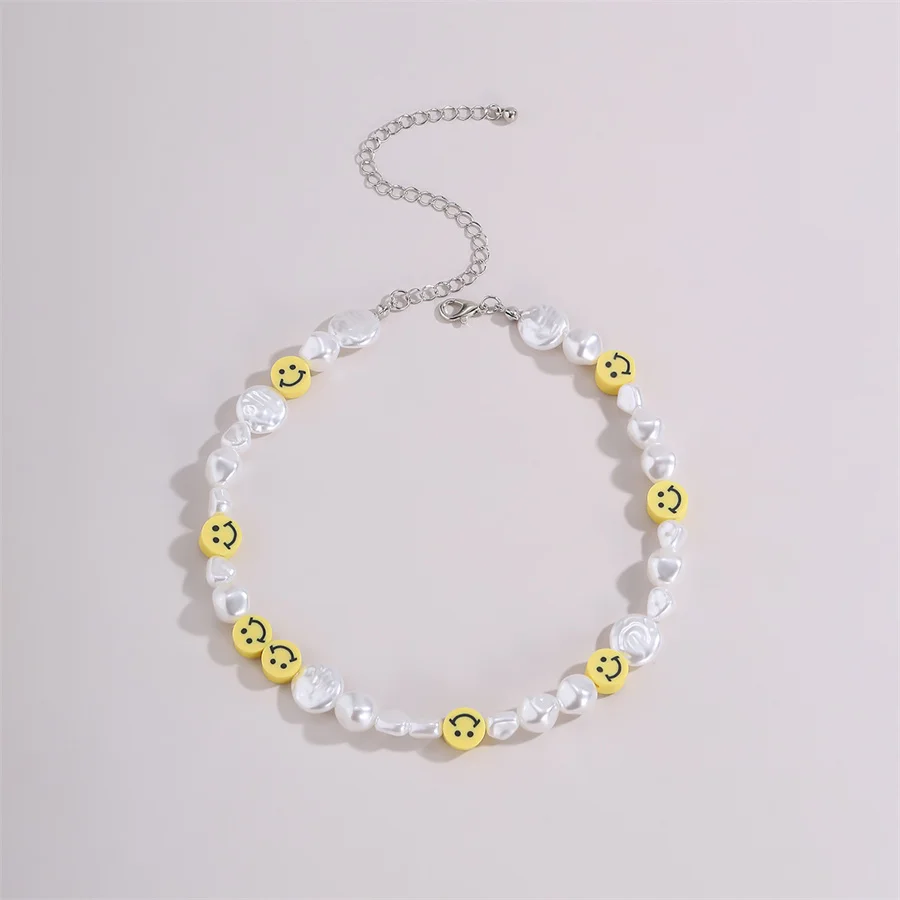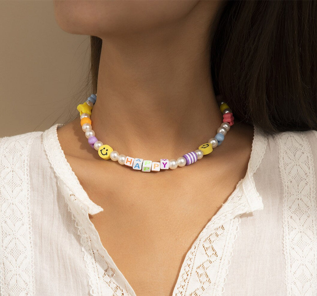 National Style Handmade Beaded Geometric Neck Chain Clavicle Chain Natural Pearl Letter Sweet Girl Smile Acrylic Color Necklace