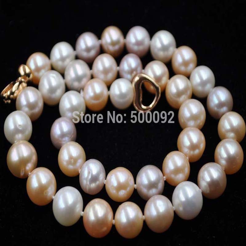 Natural 10-11mm near round white pink purple freshwater pearl necklace