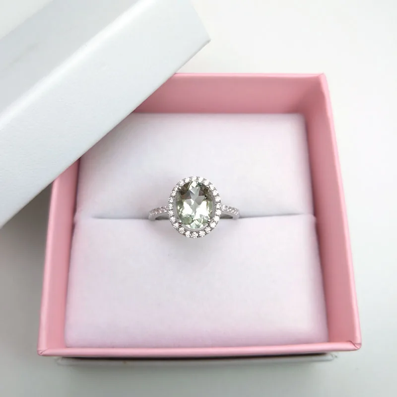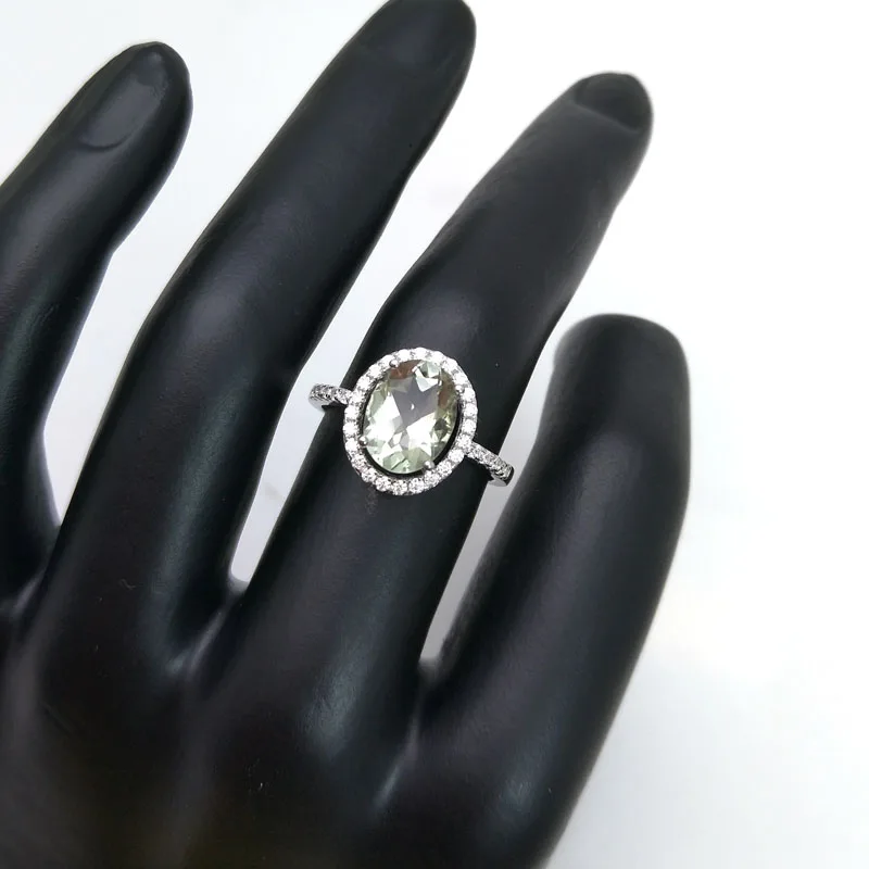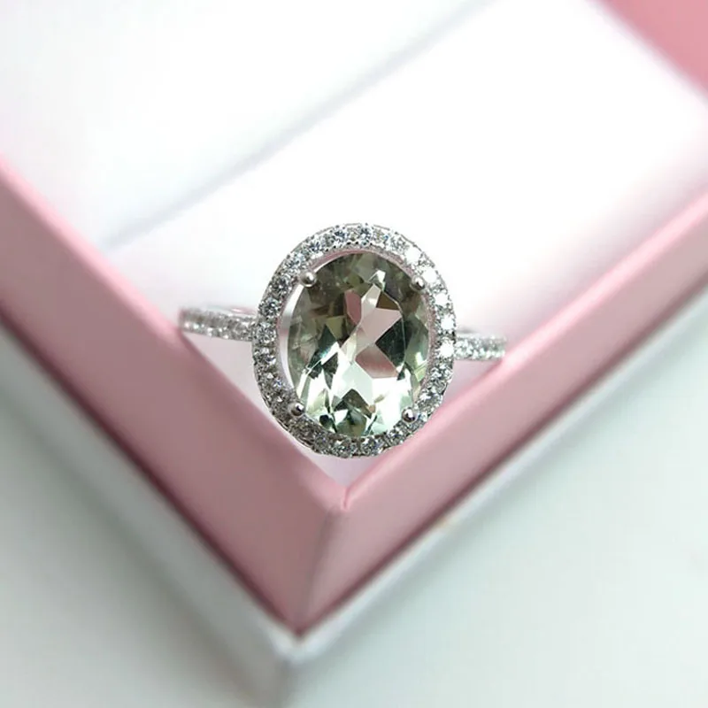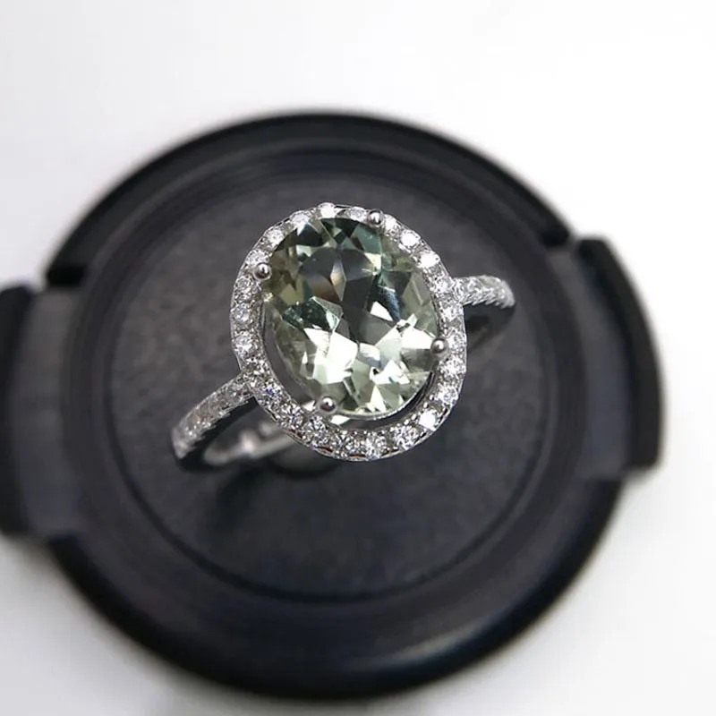 Natural 2ct brazil Green amethyst quartz oval 7*9mm gemstone Ring solid 925 sterling silver jewelry for women dailry wear gift