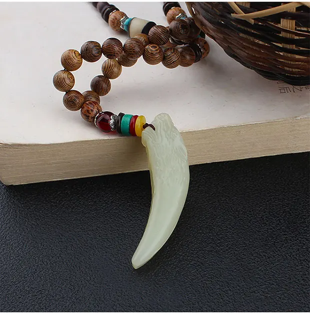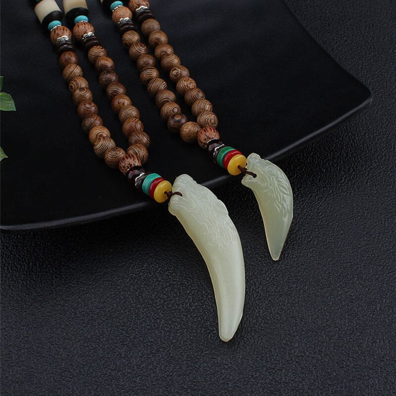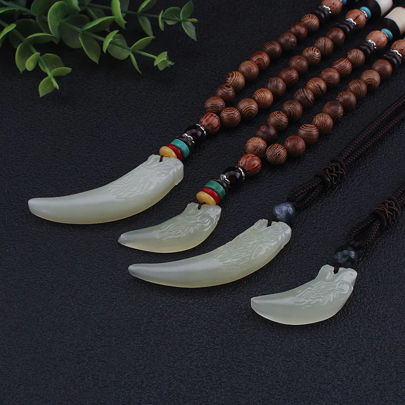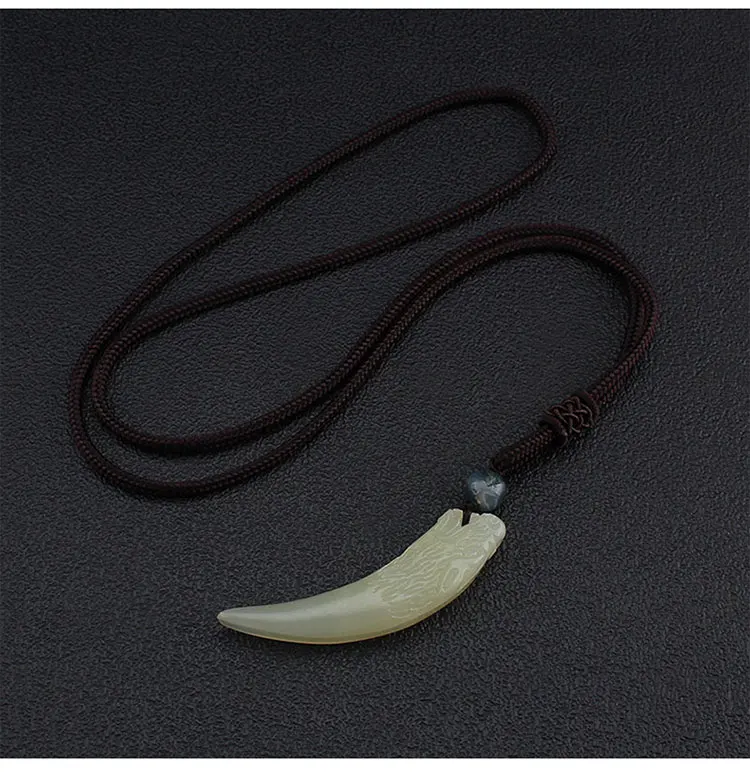 Natural Afghan Stone Pendant Necklace Wolf Tooth Amulets And Talismans Couple Necklace For Women And Men Lucky Jewelry