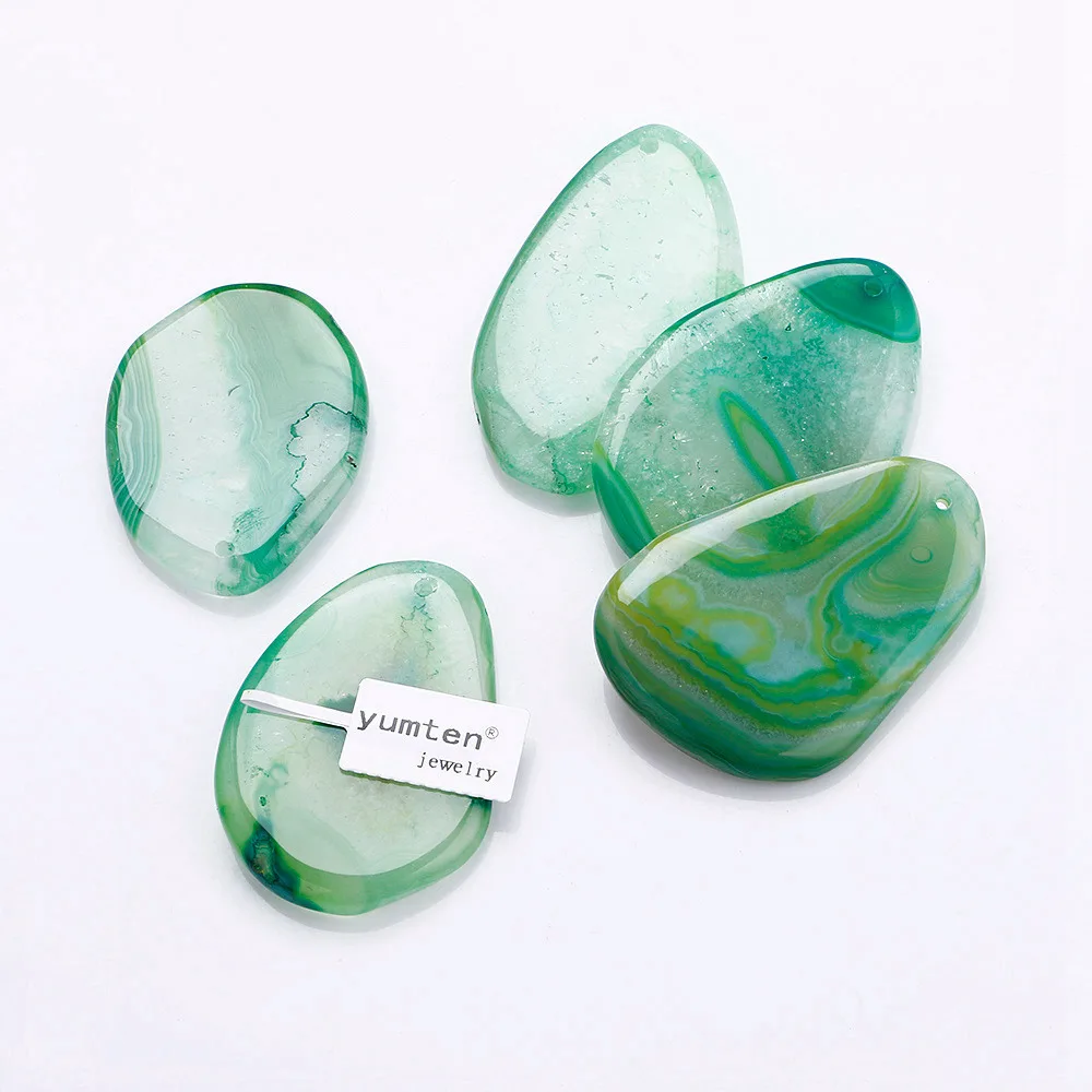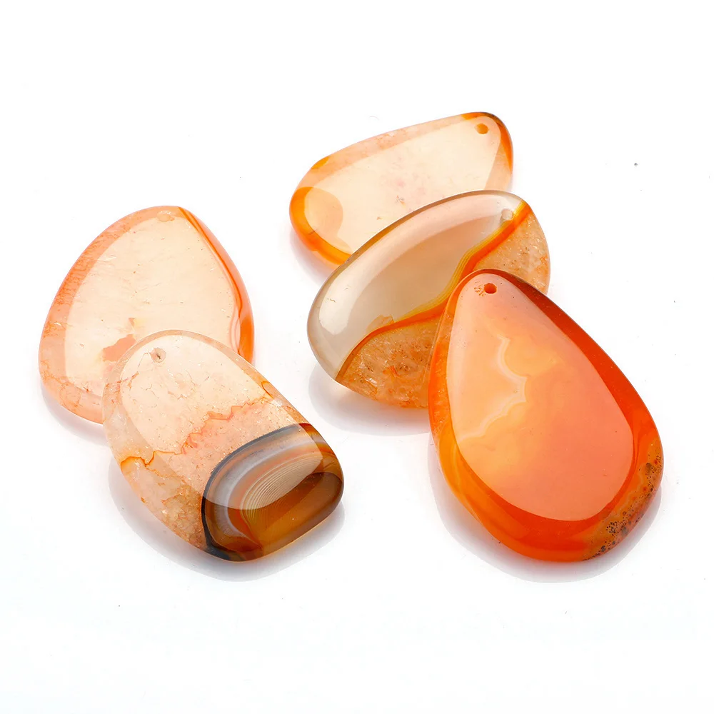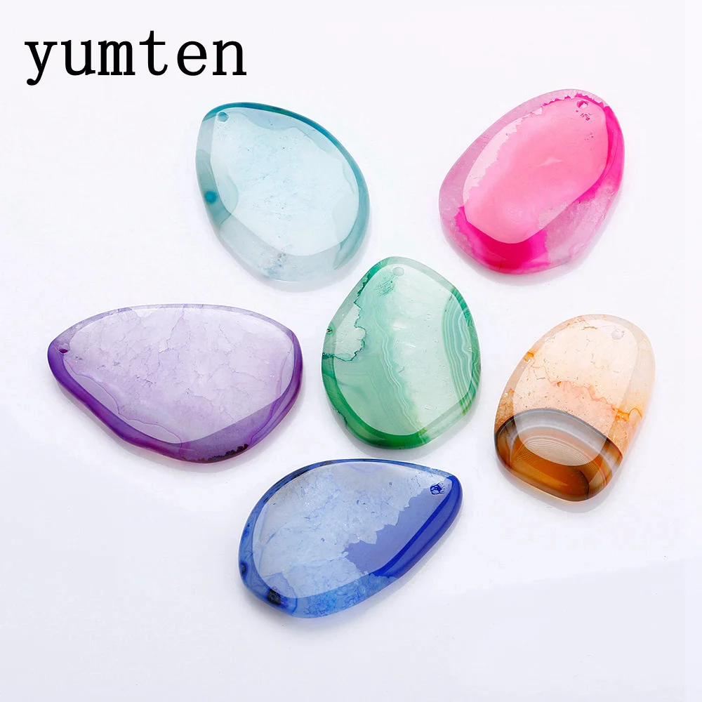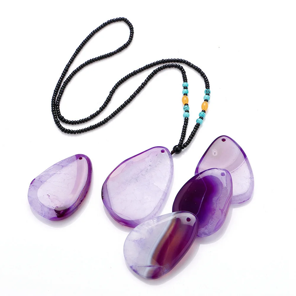 Natural Agate Water Drop Irregular Multicolor Pendant Long Necklace Arenaceous Blue Magenta Orange Red Stripe Agat Colored Mixed