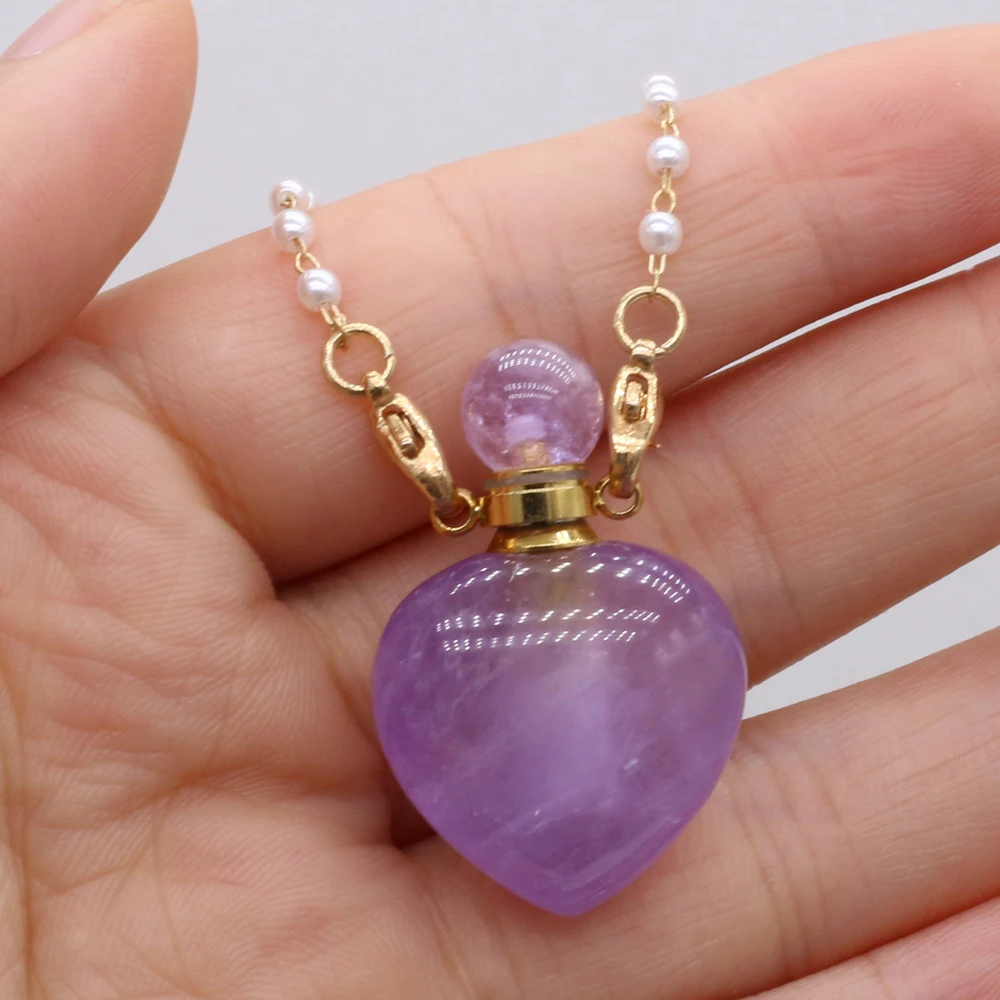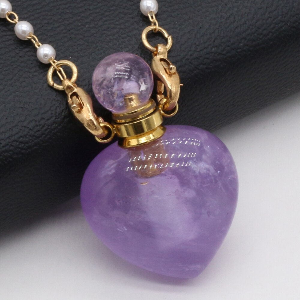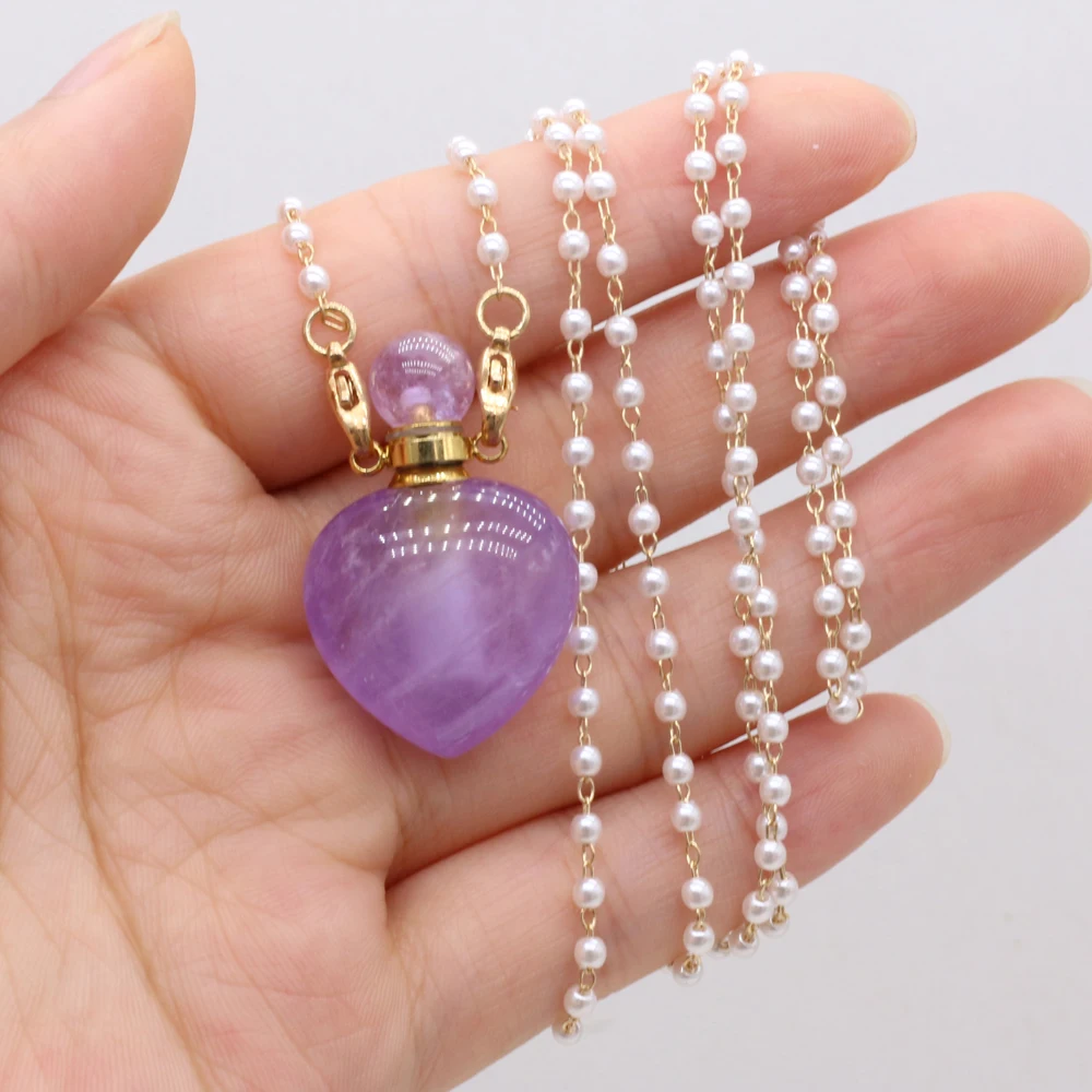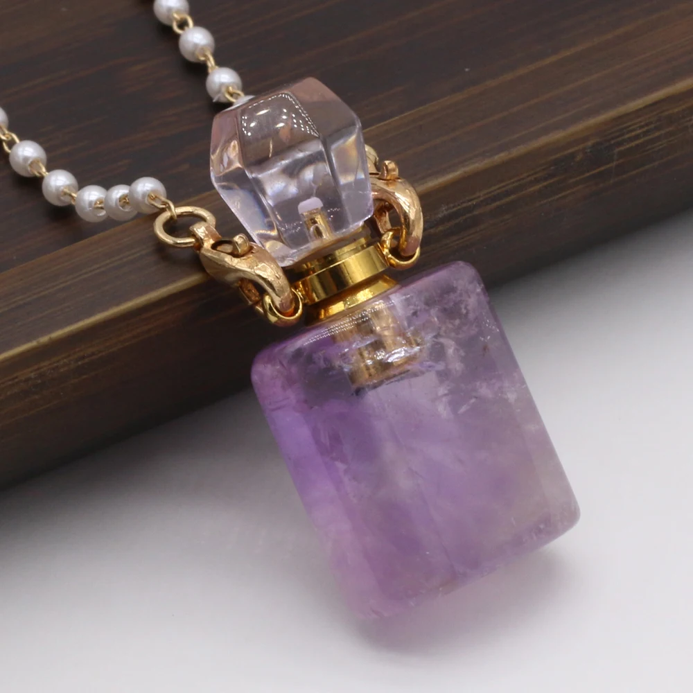Natural Amethysts Perfume Bottle Pendant Necklace Pearl Chains Essential Oil Diffuser Agates Pendant Necklace For Women Jewerly