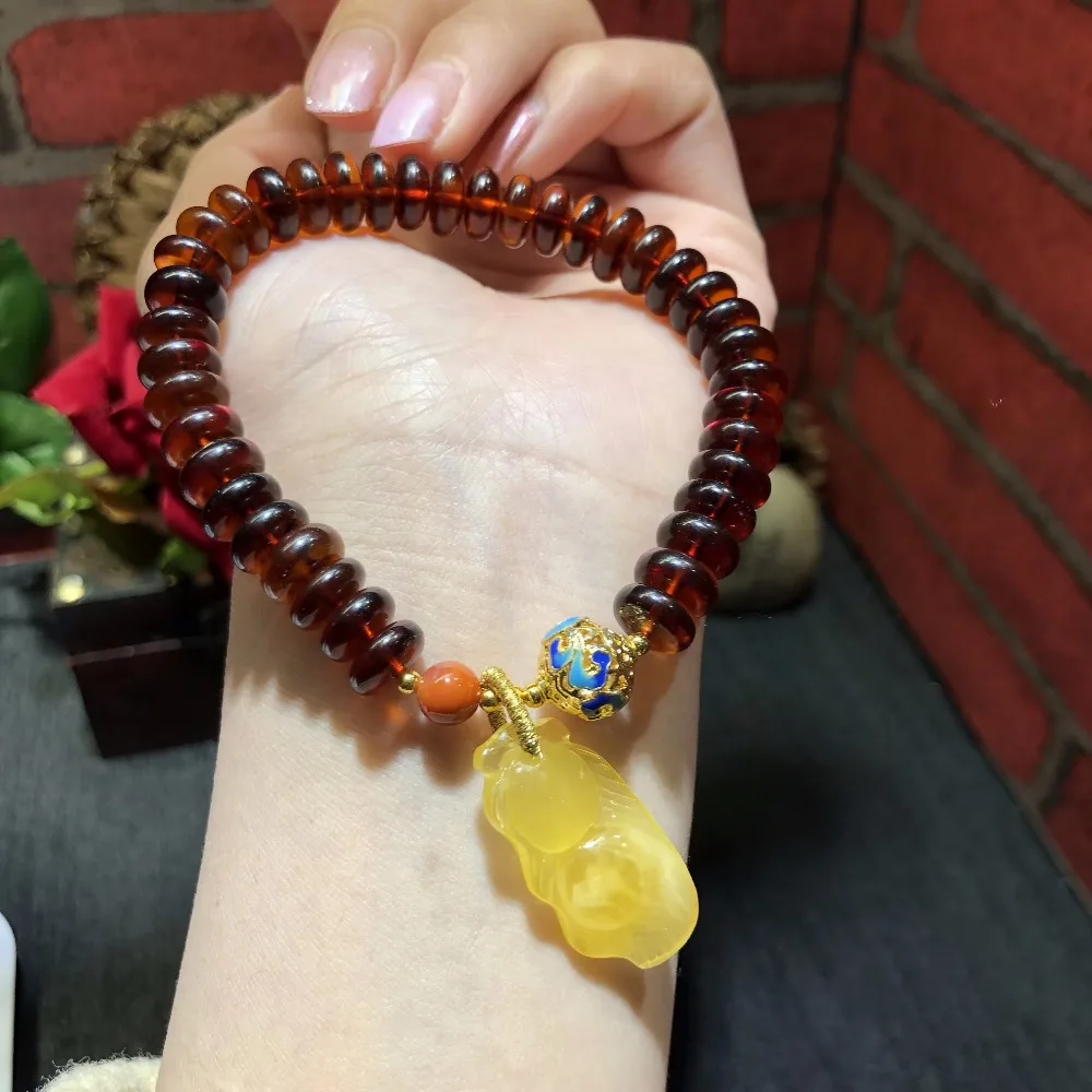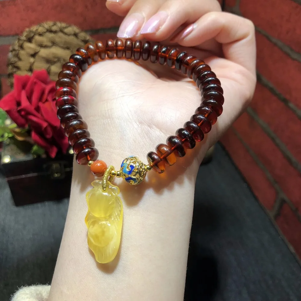 Natural Baltic Blood Amber with Yolk Color Amber Pendant Bracelet for Women Abacus beads European Fashion Jewelry Supplier