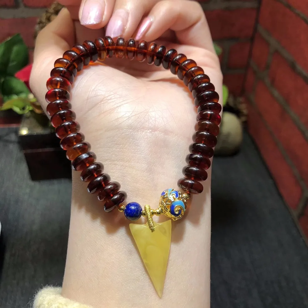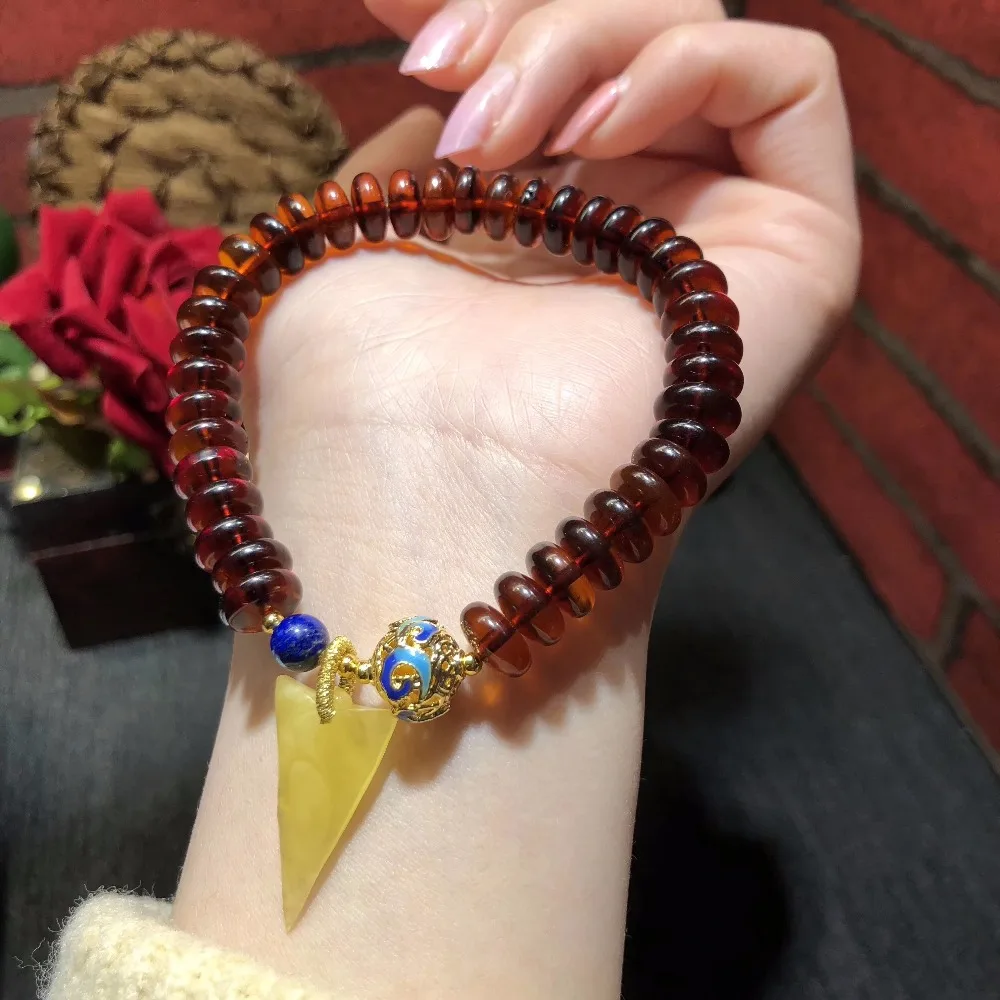 Natural Blood Amber with Yolk Color Amber Pendant Bracelet for Women Abacus beads New Design European Fashion Fine Jewelry