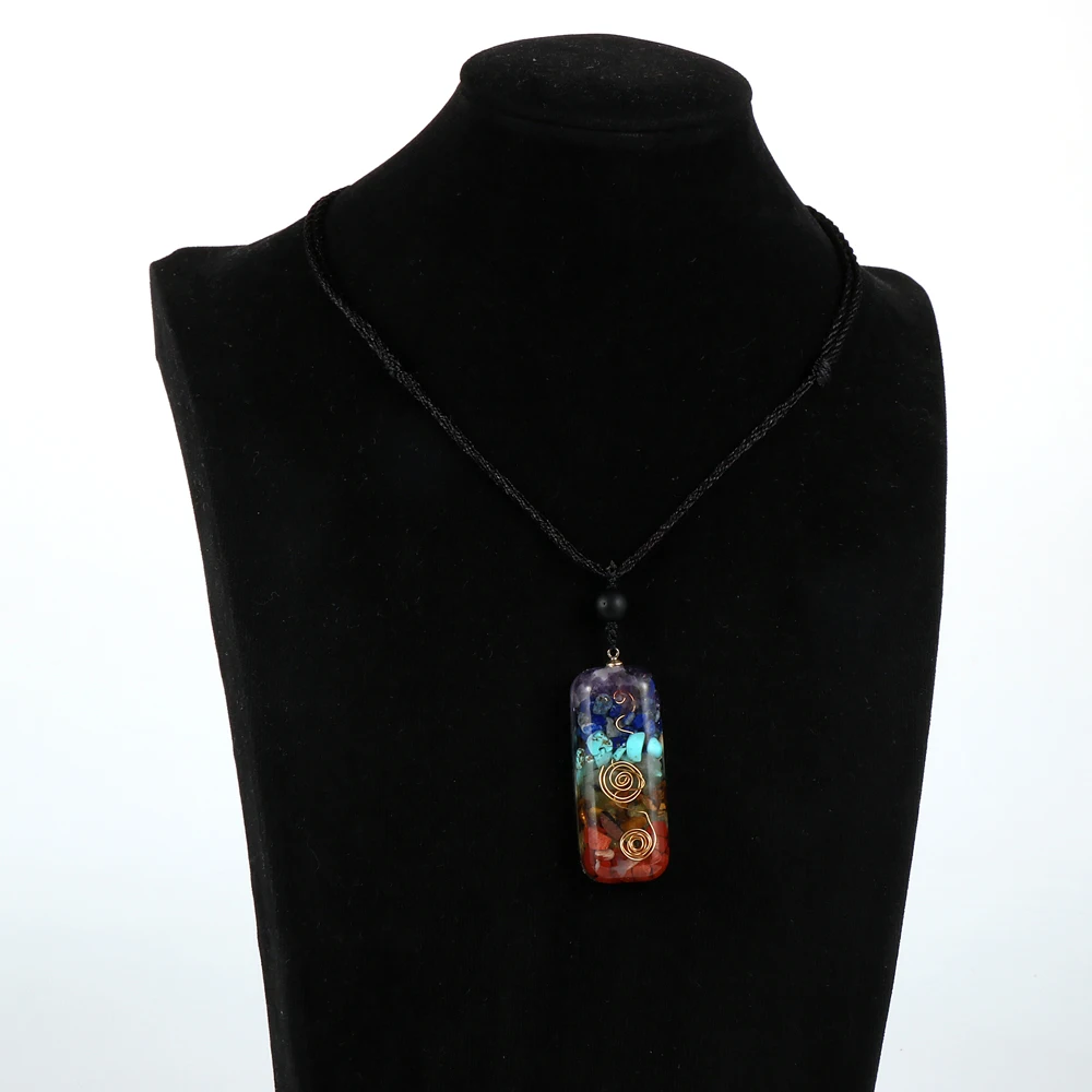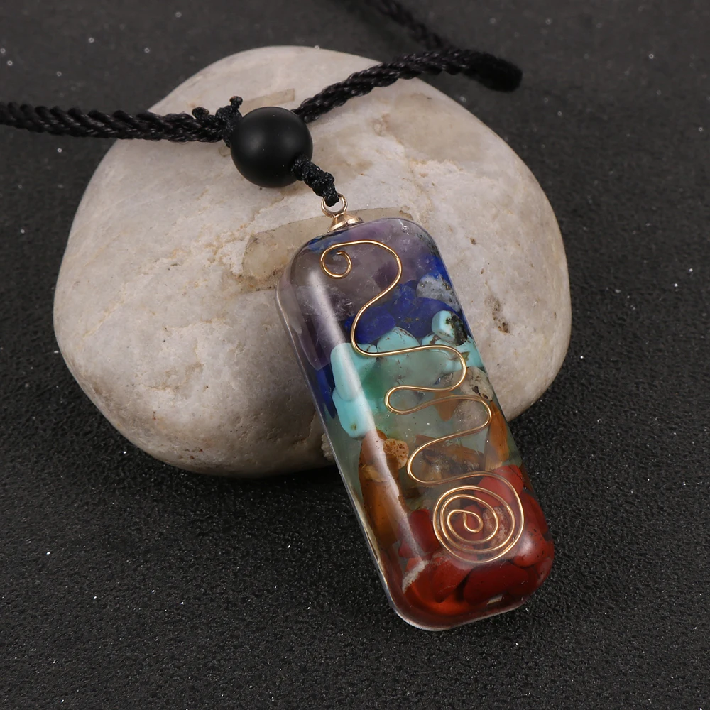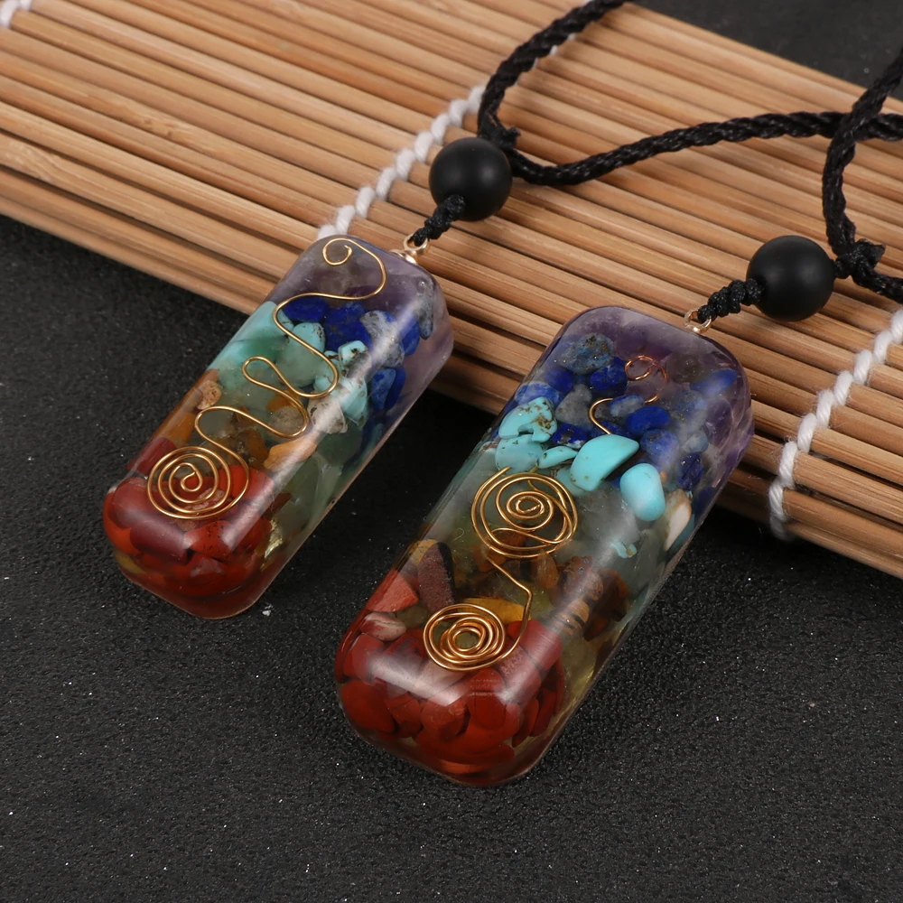 Natural Chip Gravel Stone Resin 7 Chakra Orgone Energy Pendant Necklace Reiki Healing Pendulum Amulet For Men Women Couples