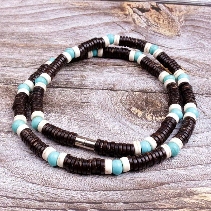 Natural coconut shell spacer beads Surfer Necklace for men tribal jewelry