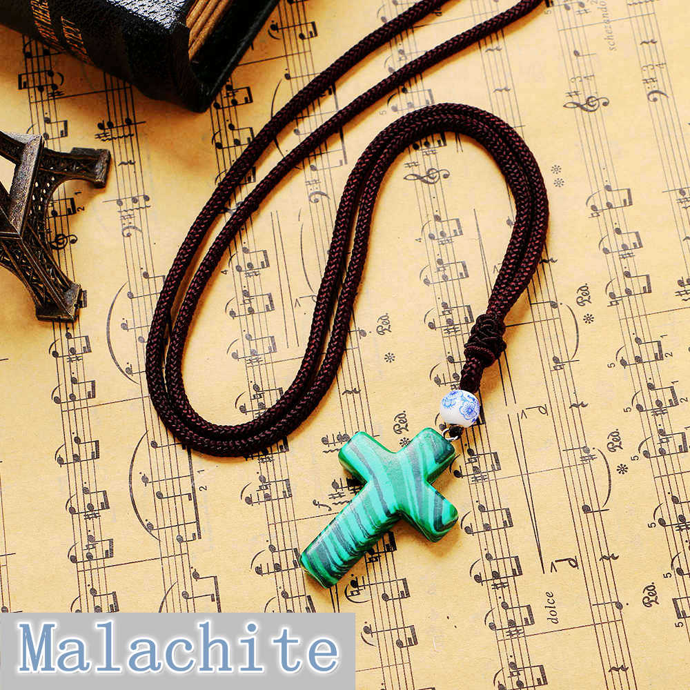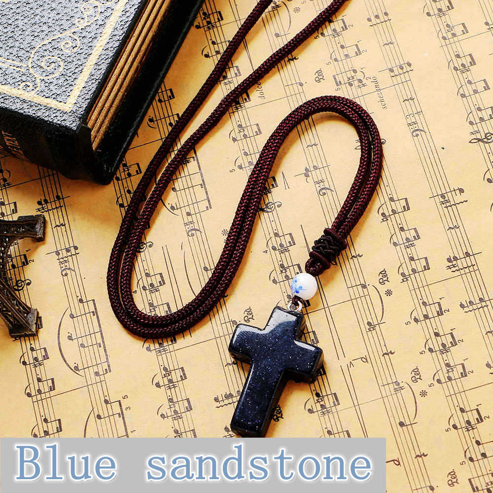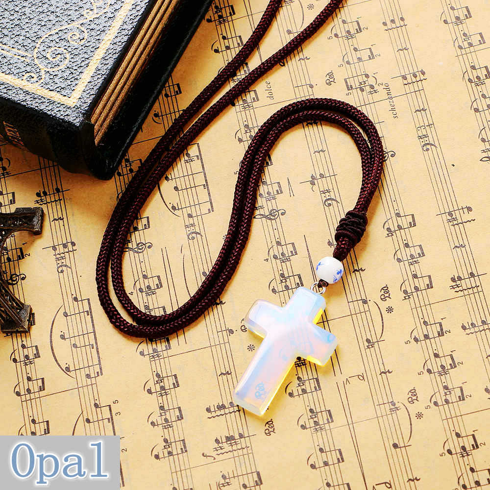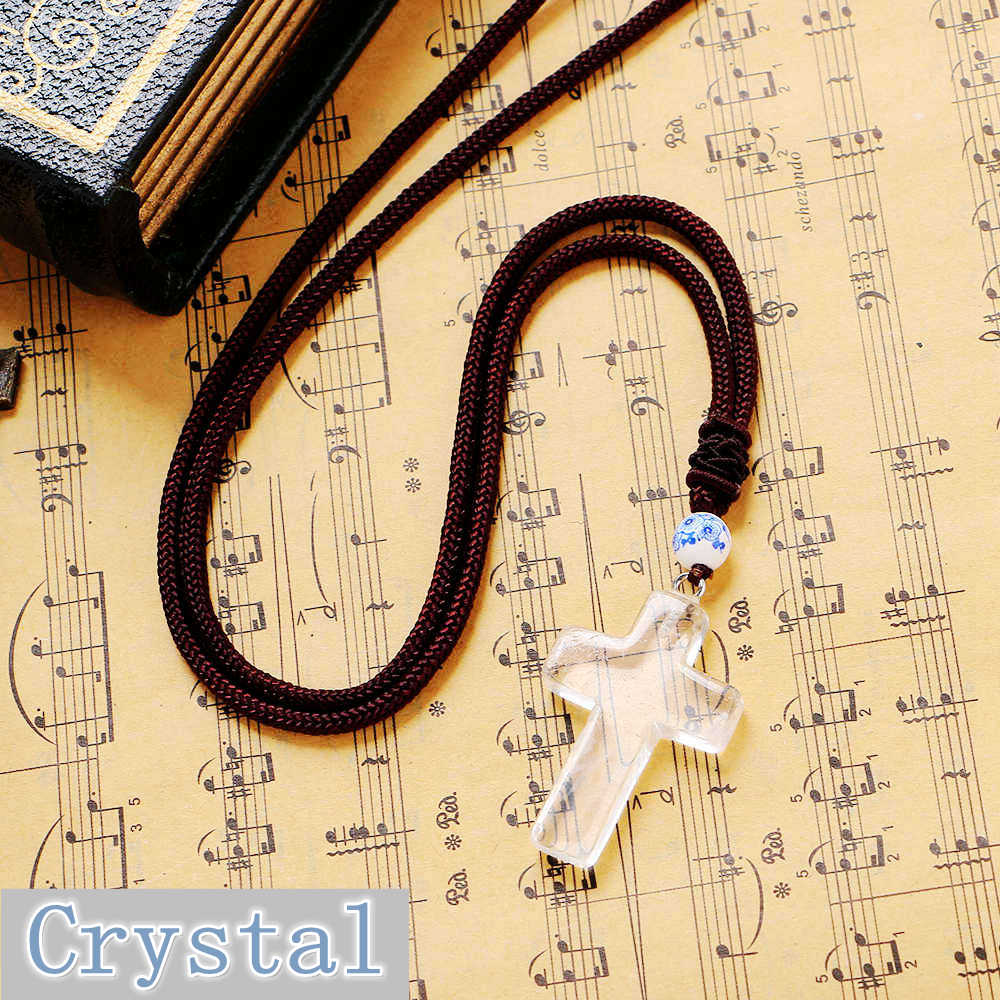 Natural Cross Quartz Necklace Leather Choker Fashion Jewelry For Women Cross Crucifix Necklaces & Pendants Reiki Chakra Gemstone