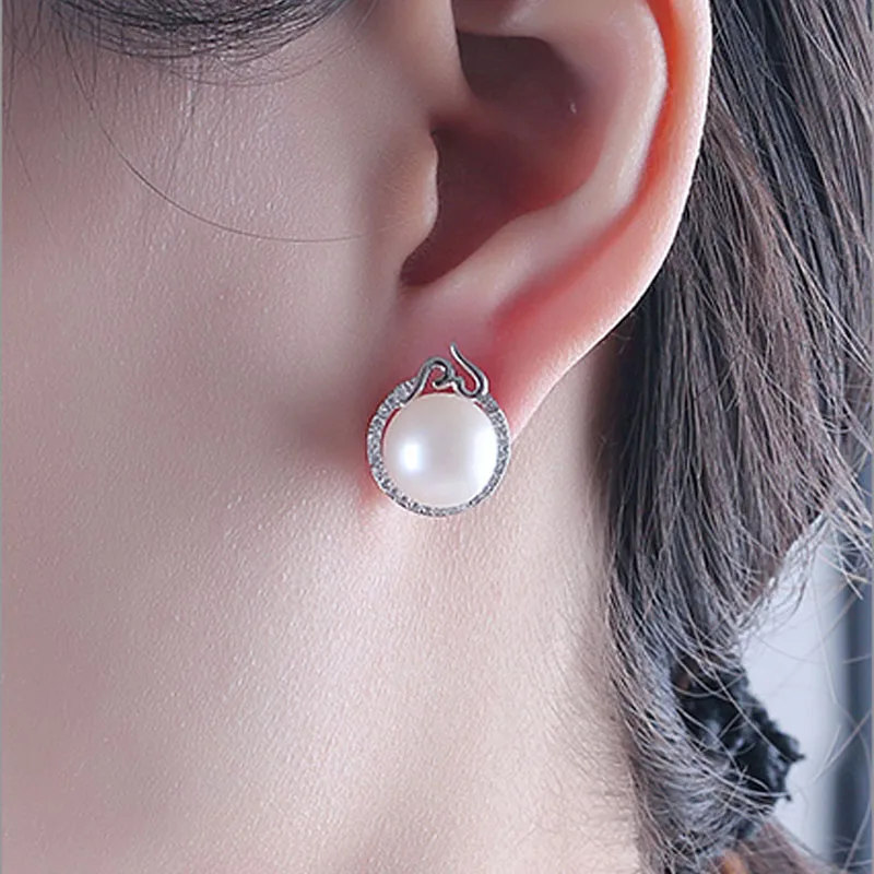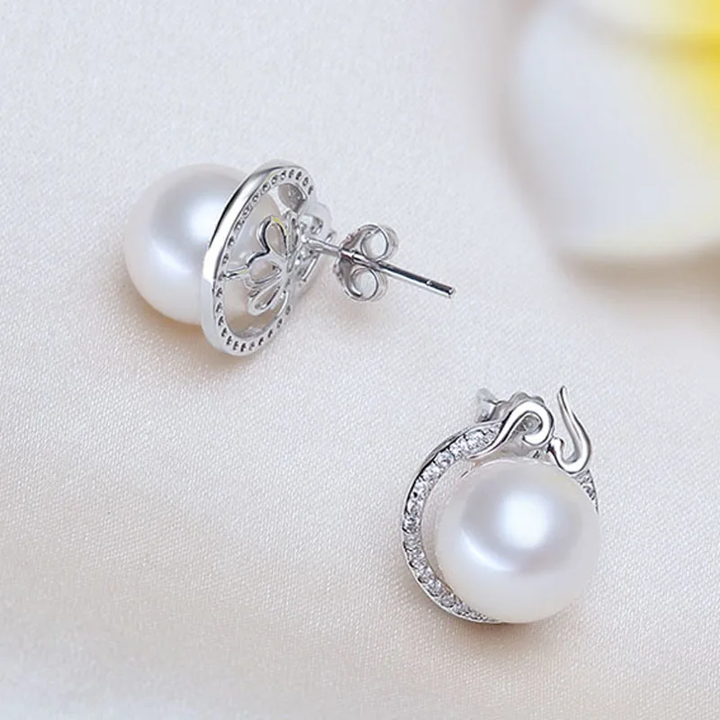 Natural pearl earrings silver 925 for women,white pearl stud earrings mother of pearl jewelry wife birthd gifts