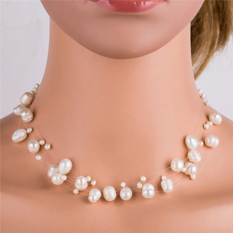 natural freshwater pearl necklace baroque pearl jewelry women's Party Wedding not show steel accessories