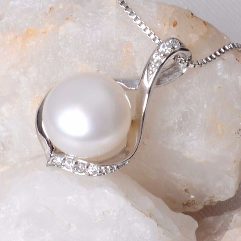 Real Natural pearls necklace & Pendants 925 sterling silver 9-10mm pearl jewelry