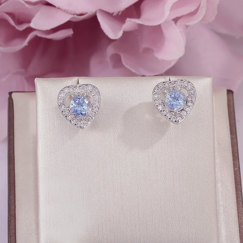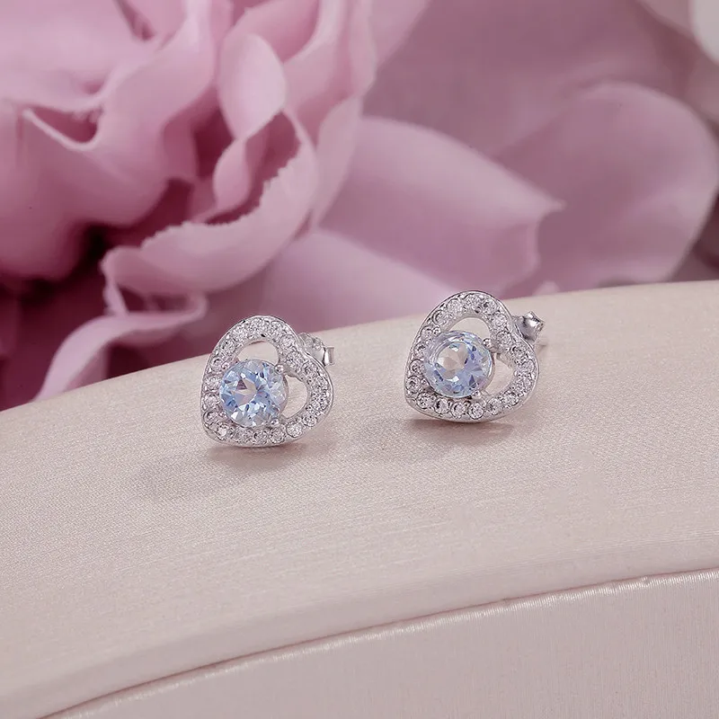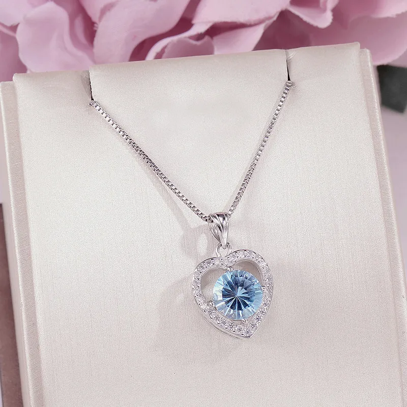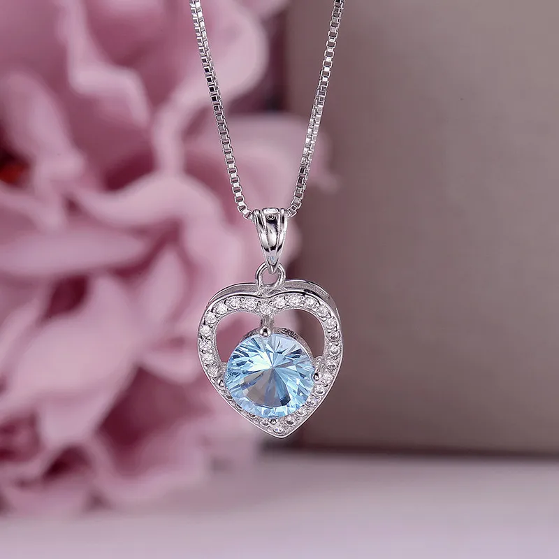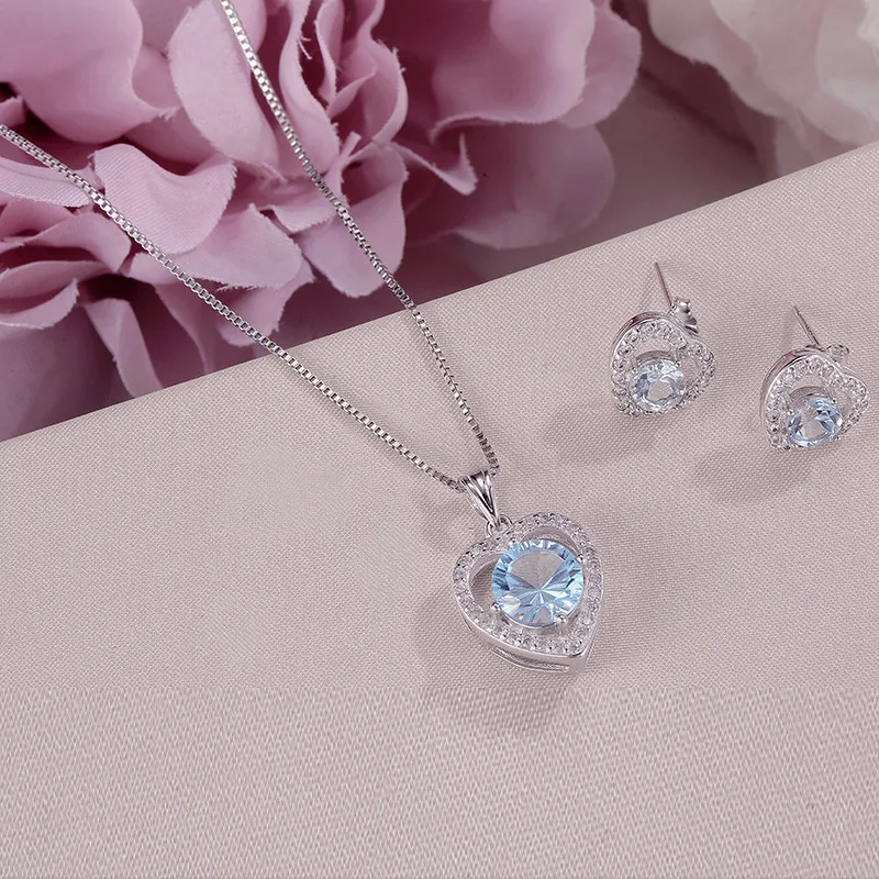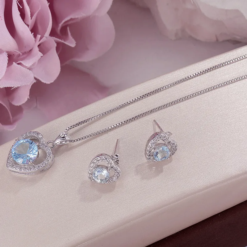 Natural Gemstone Jewelry Sets For Women Solid 925 Silver Topaz Heart Blue Stud Earrings Necklace Pendant Set Fine Jewelry CCS007