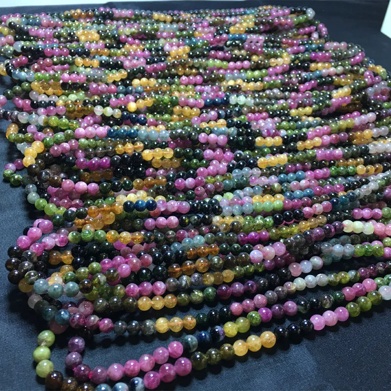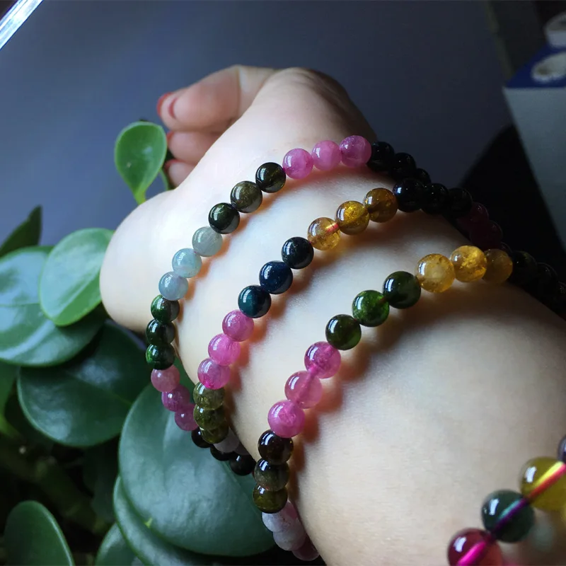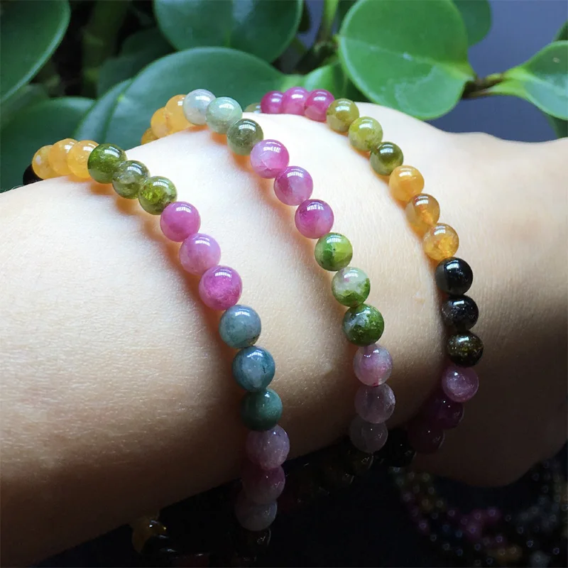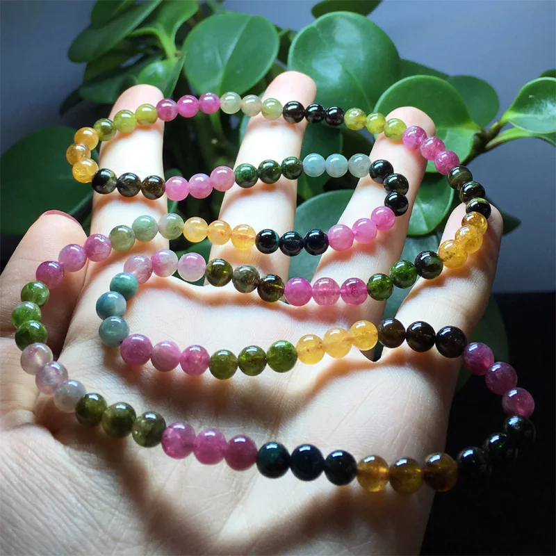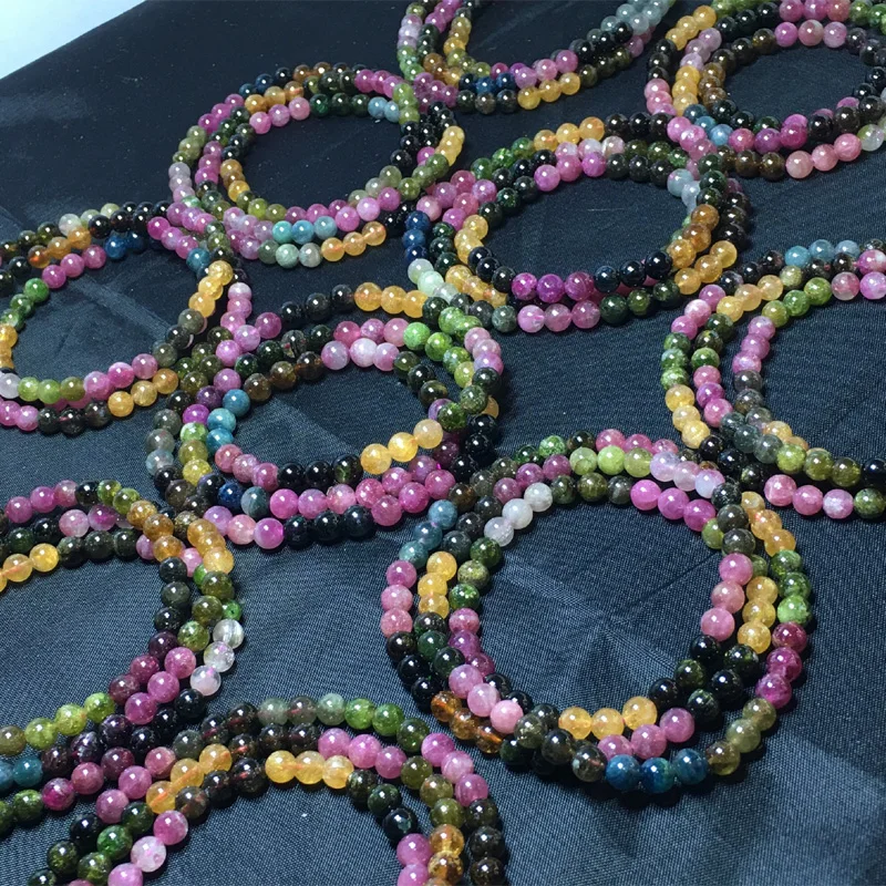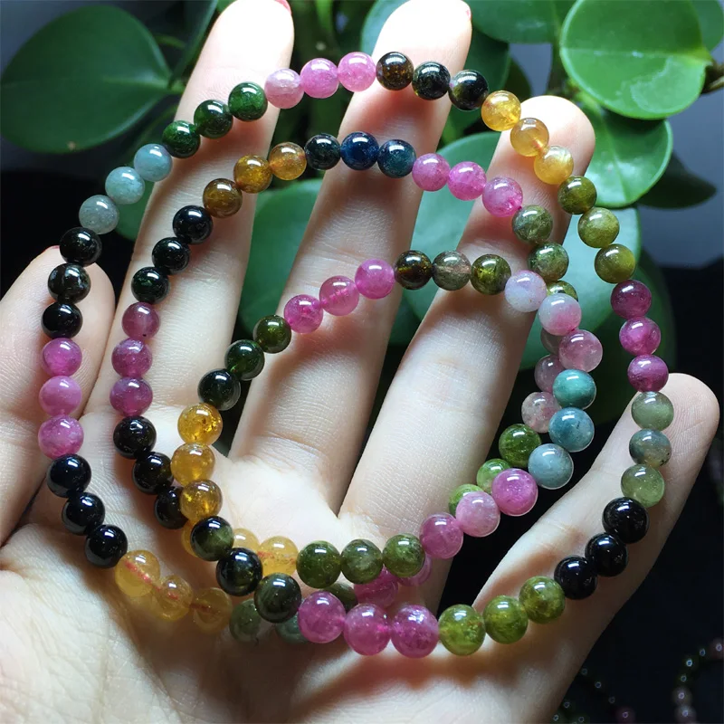 Natural Genuine Colorful Mix Tourmaline Multi-color Stretch Bracelet Round Beads Necklace 3 Turns 5.5mm 04437